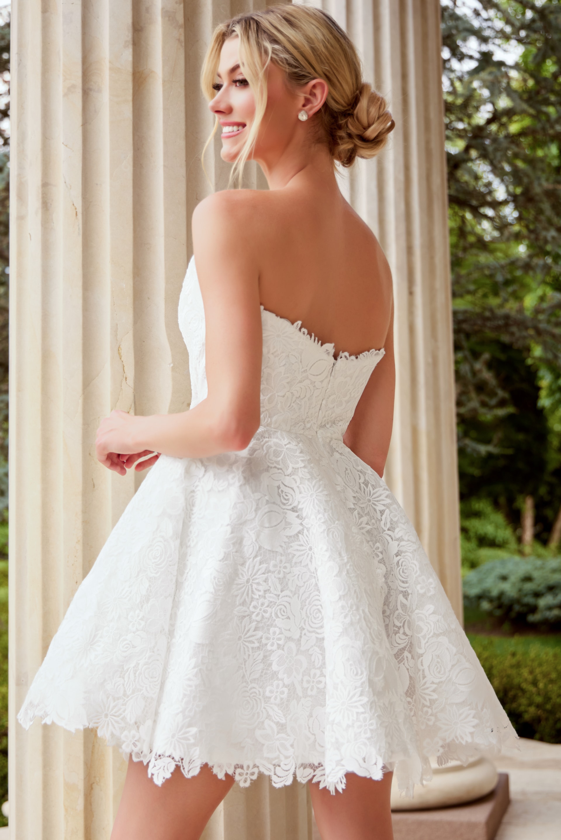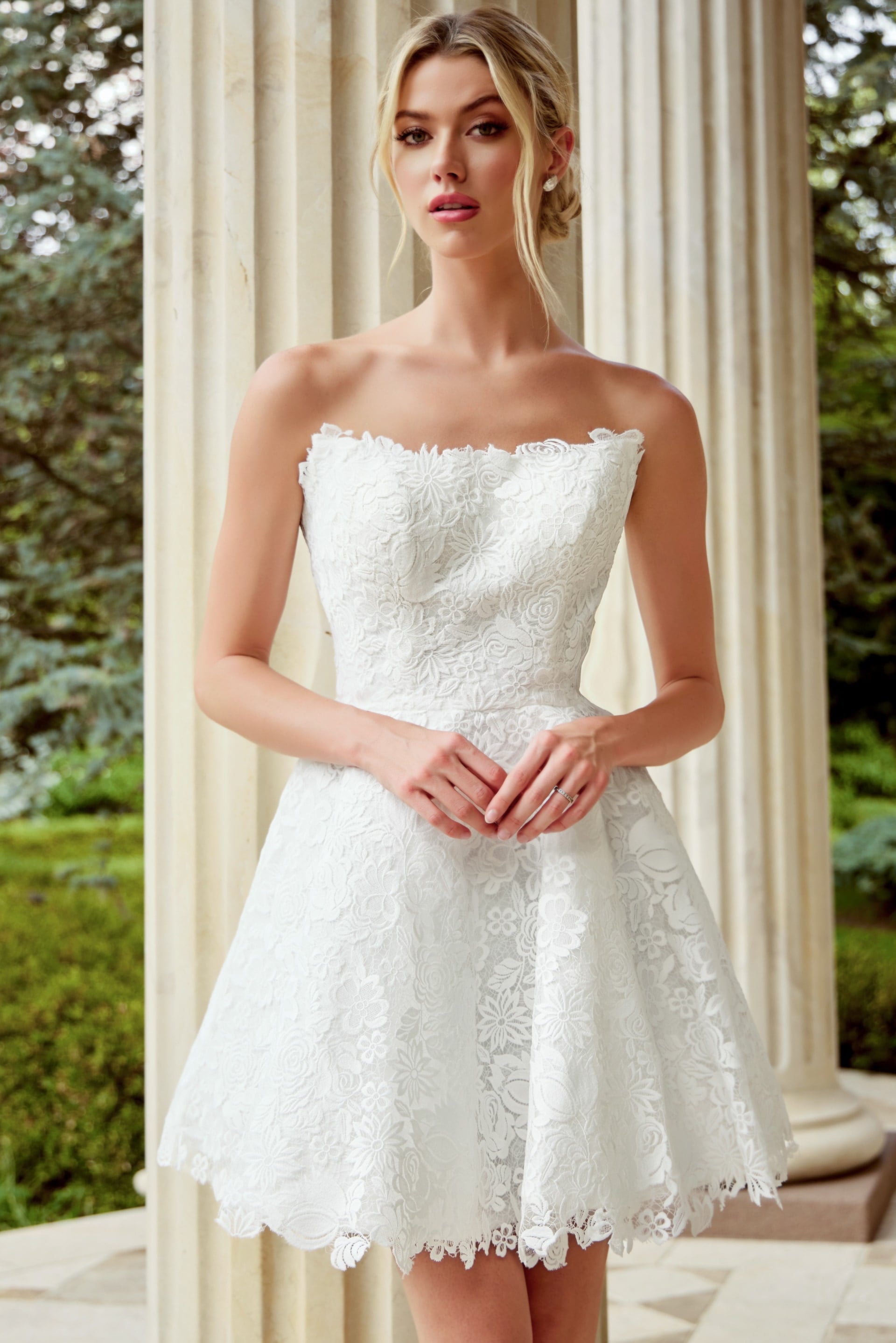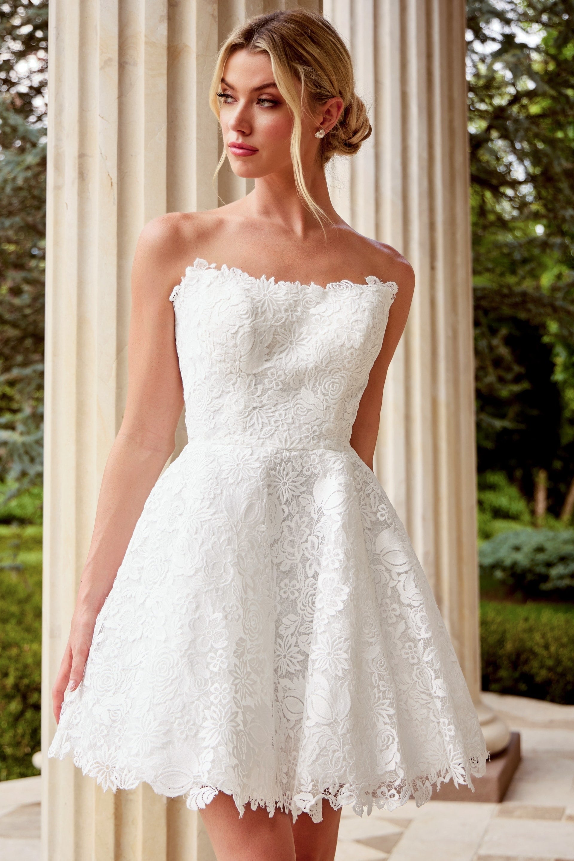 Floral Lace Appliqués, Scalloped Hem, Structured Bodice