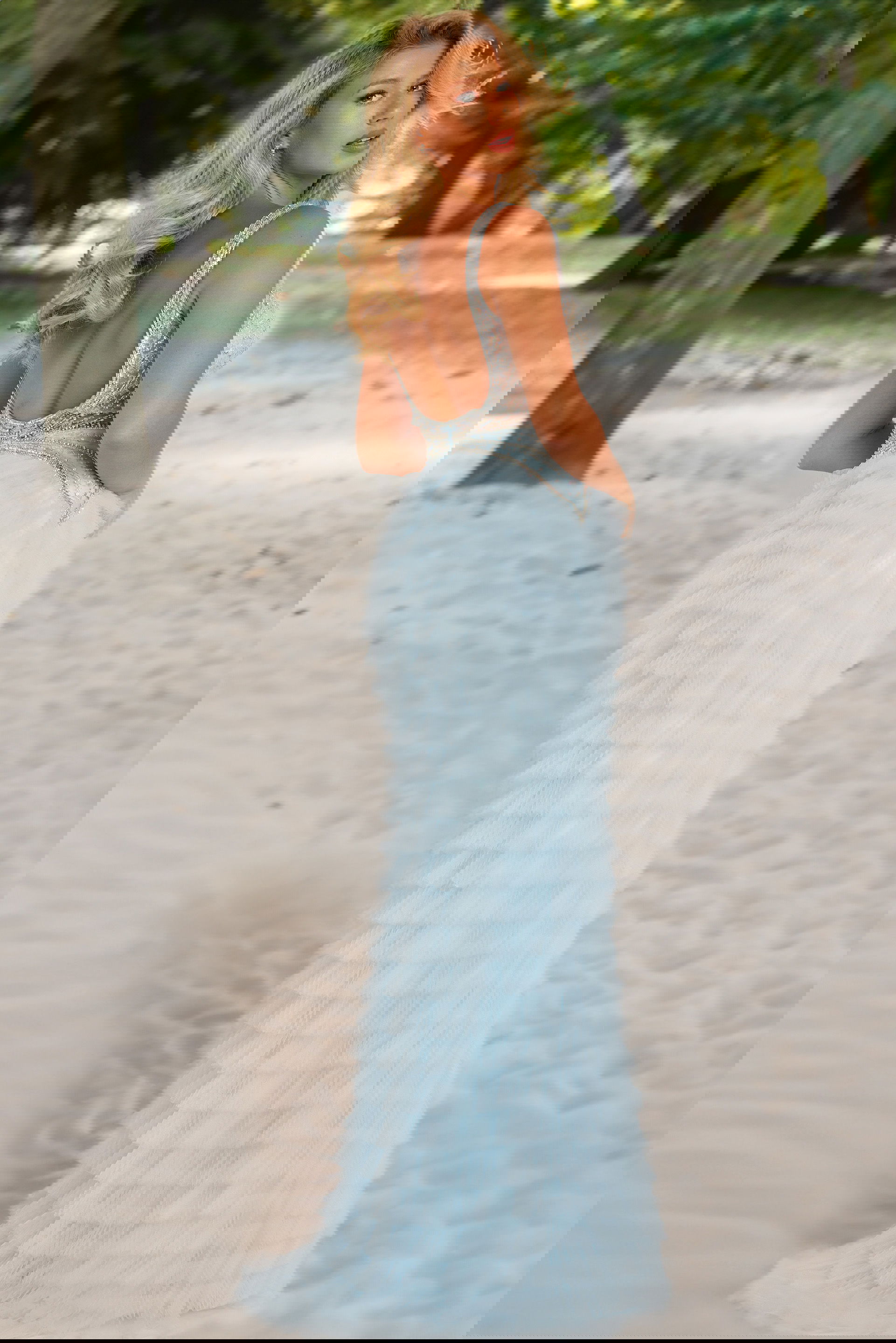 The style of the dress is maxi, offering a floor-length hem that provides an elegant and graceful appearance. The layered skirt features a high slit, which adds a touch of drama and allure while allowing for easy movement. The illusion beaded bodice is a stunning detail, creating a mesmerizing effect with its intricate beadwork, making you shine on your special night.
