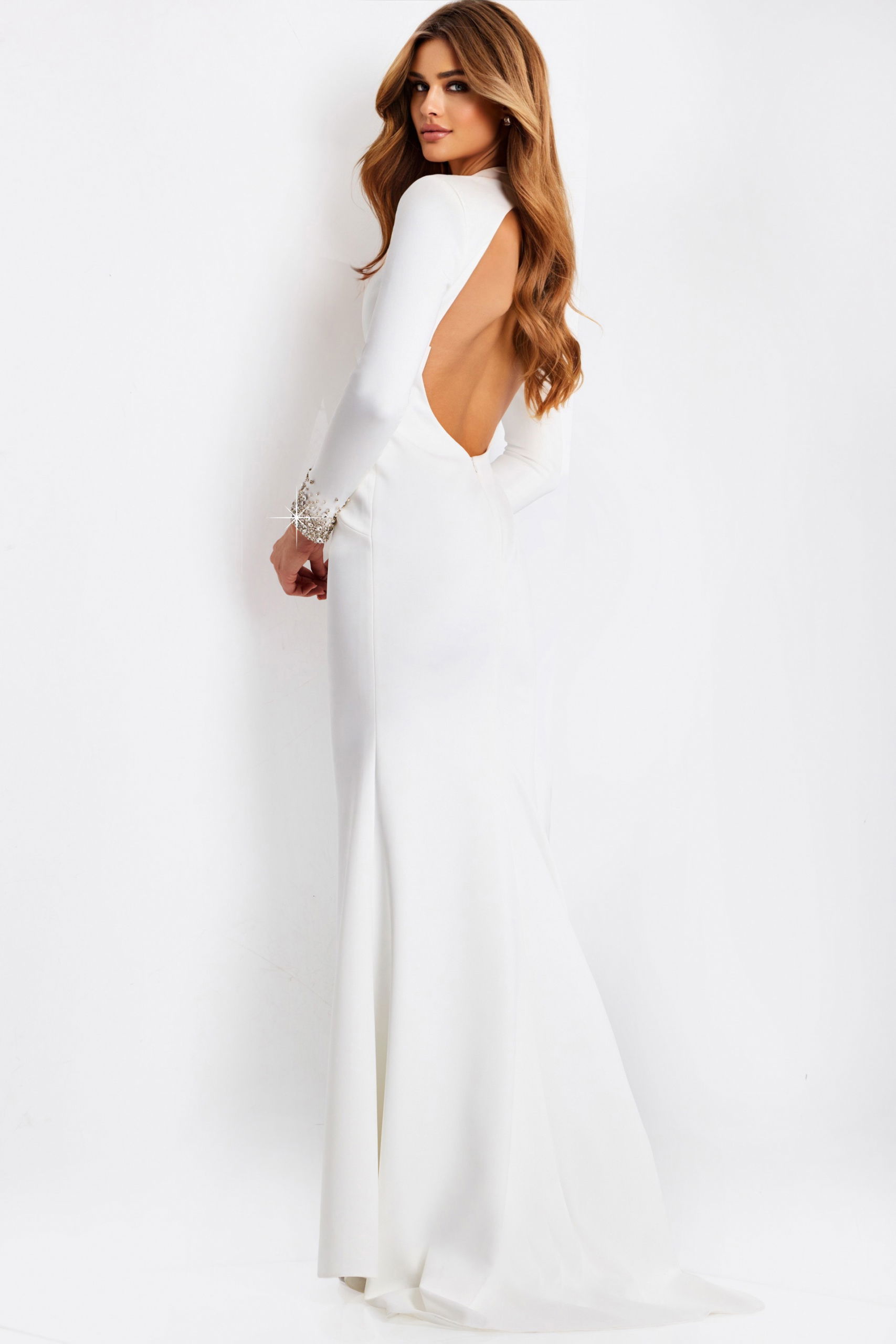 Open Back, Beaded Cuff Accents, Fitted Bodice, Small Train