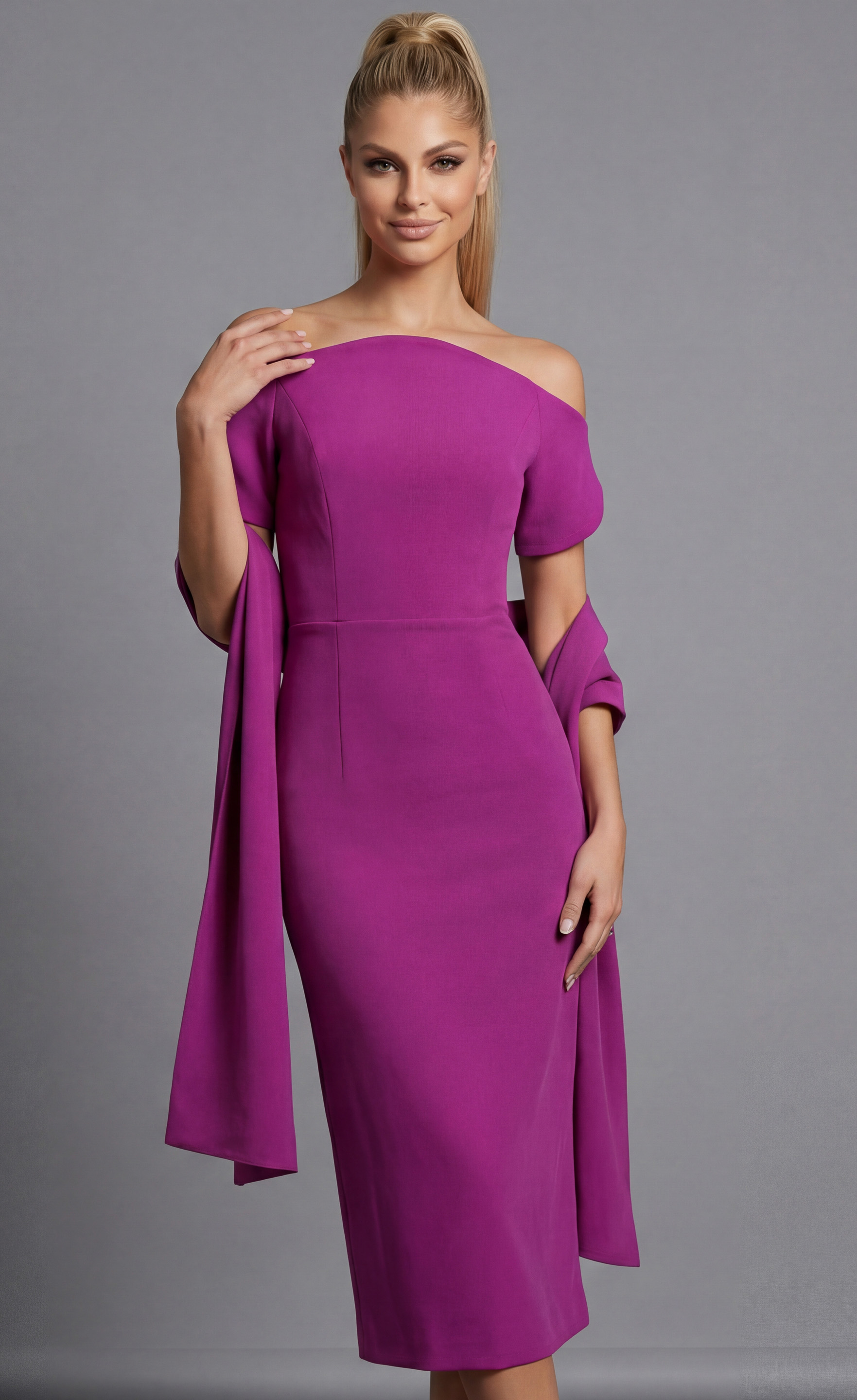 Strapless Bow Waist Midi Evening Dress 47595