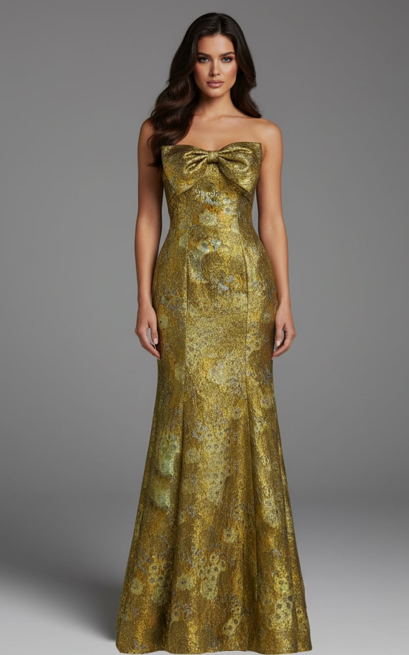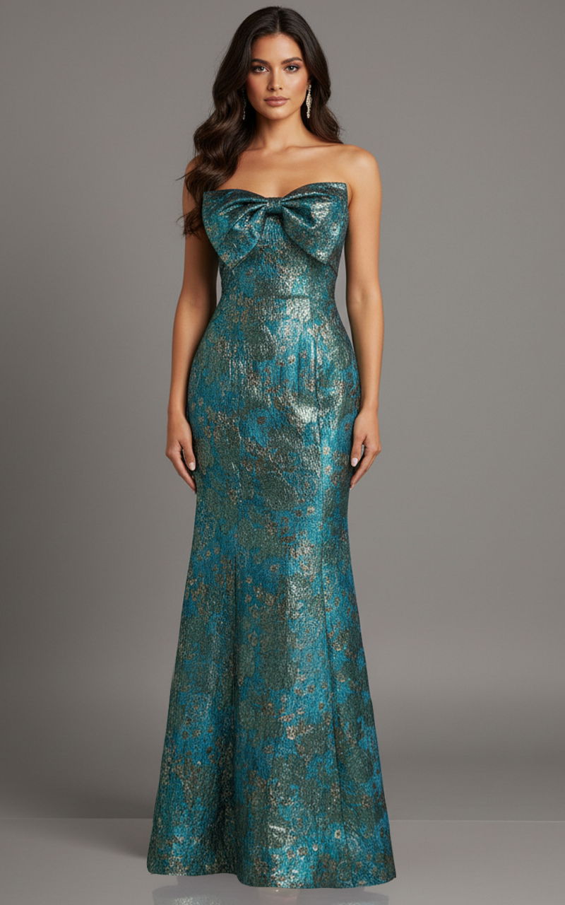 Metallic Strapless Prom Dress with Bow Detail 49163
