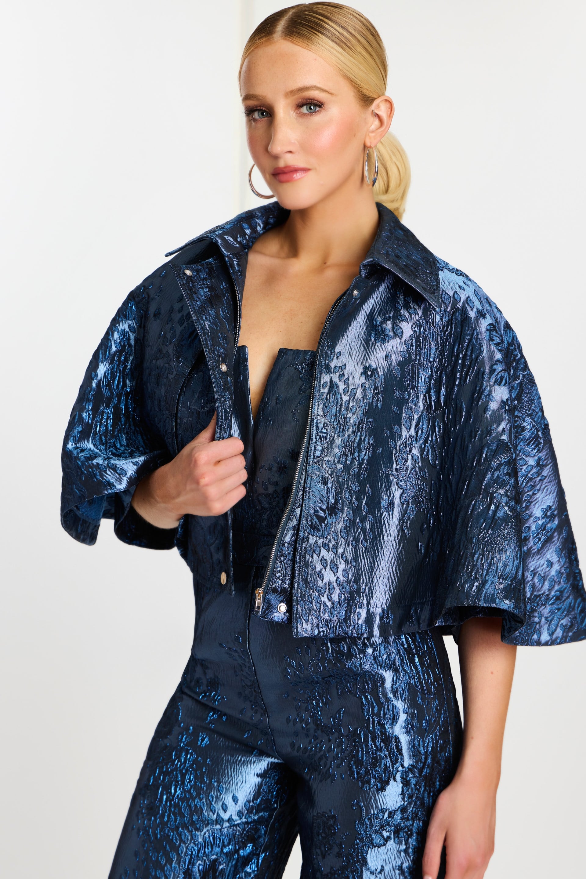 Floral Jacquard Tailored Suit With Deep V Jacket 49164