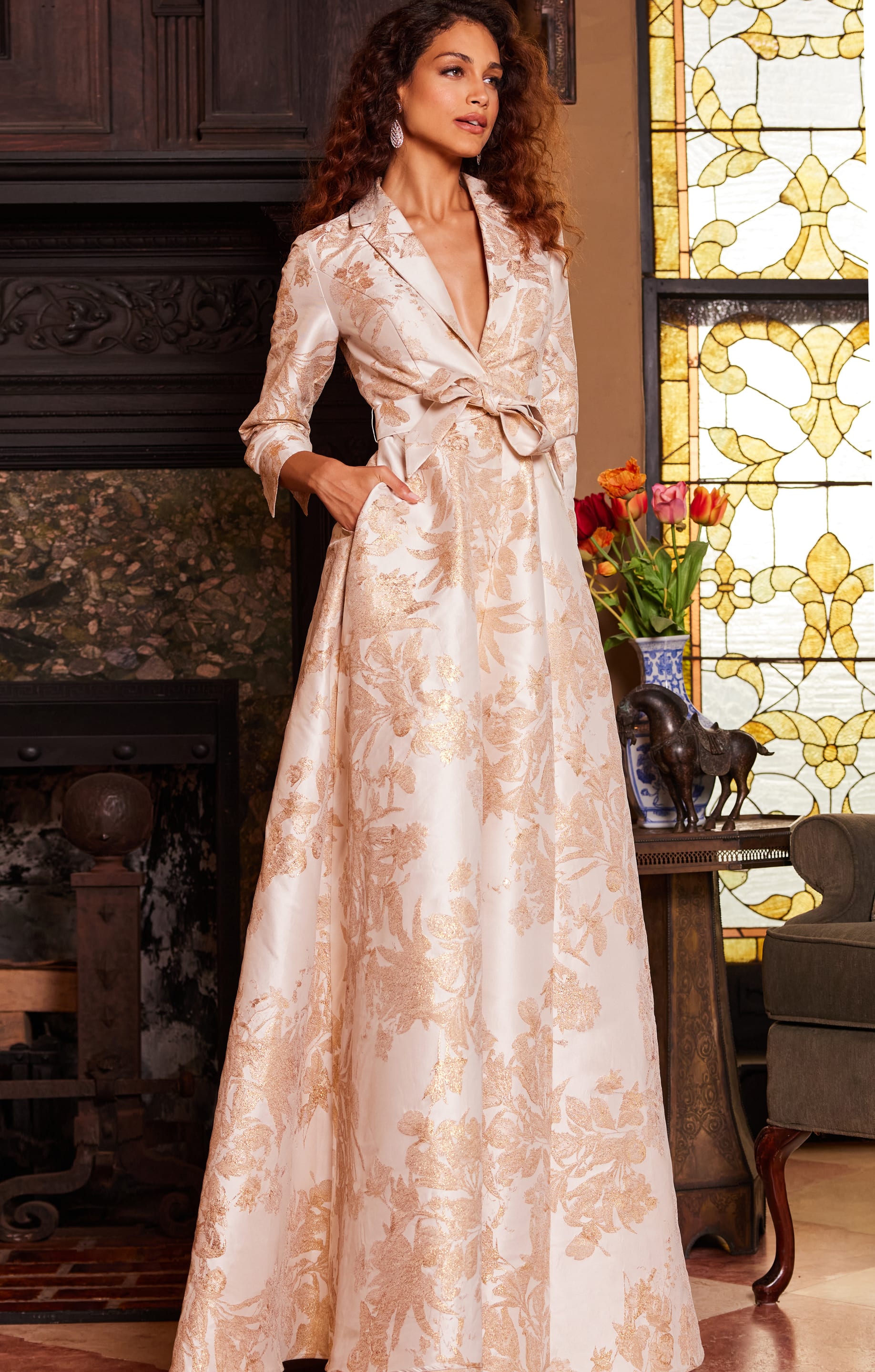 The Jovani 23178 evening dress is a sophisticated and elegant choice, perfect for formal events and particularly suited for the mother of the bride. Crafted from luxurious jacquard material, this gown exudes timeless charm and sophistication.