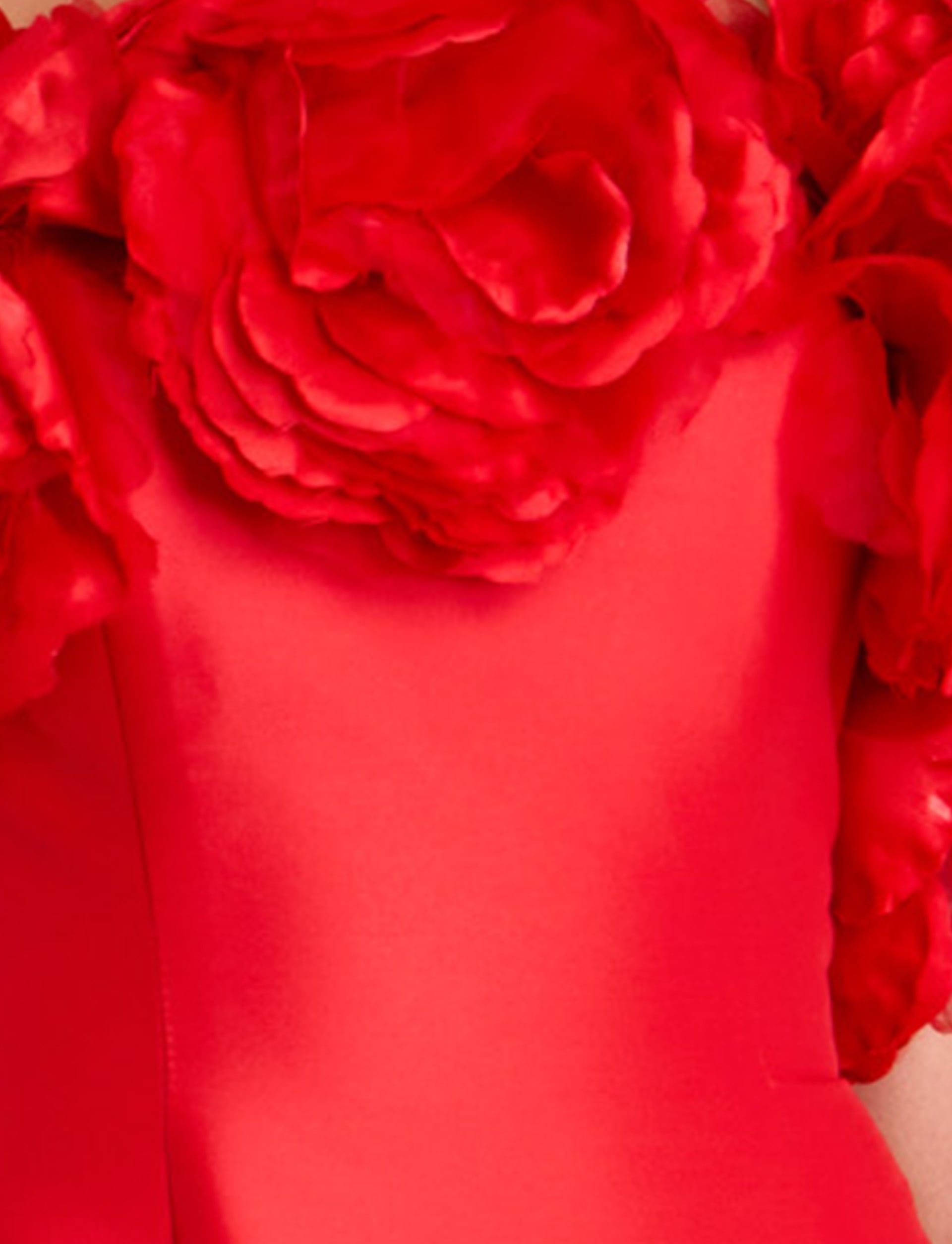 This elegant off-shoulder dress features a chic A-line silhouette, perfect for any formal occasion. The neckline is adorned with exquisite floral appliqué, adding a touch of romance and sophistication. The midi-length flow adds a graceful movement, while the short sleeves elegantly drape over the shoulders. An ideal choice for making a memorable entrance.