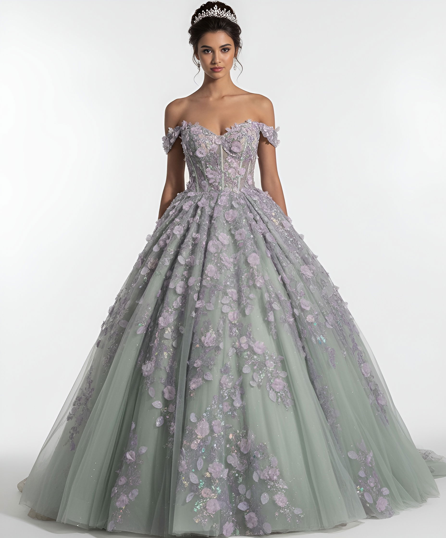 Off Shoulder Ball Gown with 3D Floral Appliqué Q46665