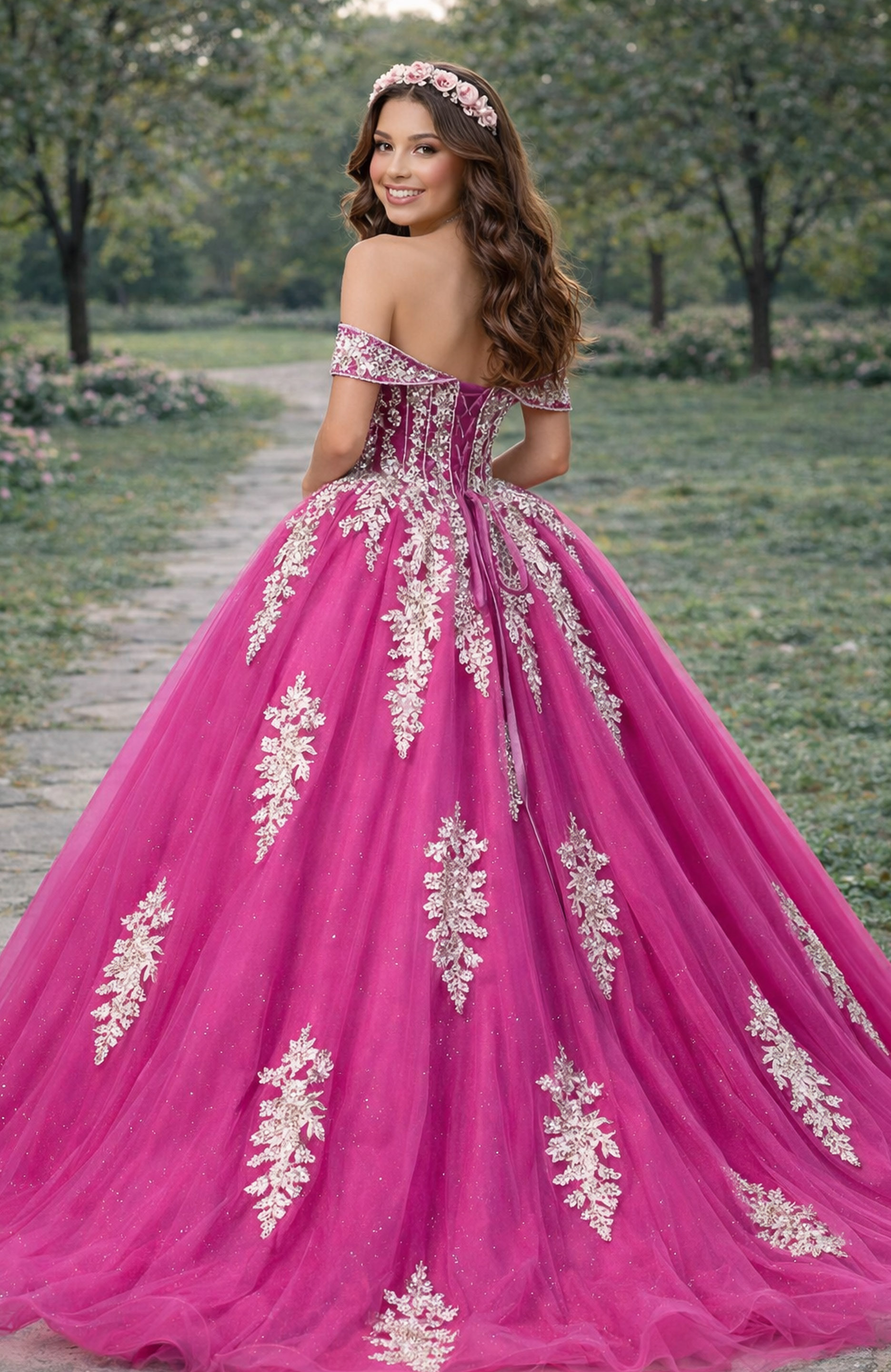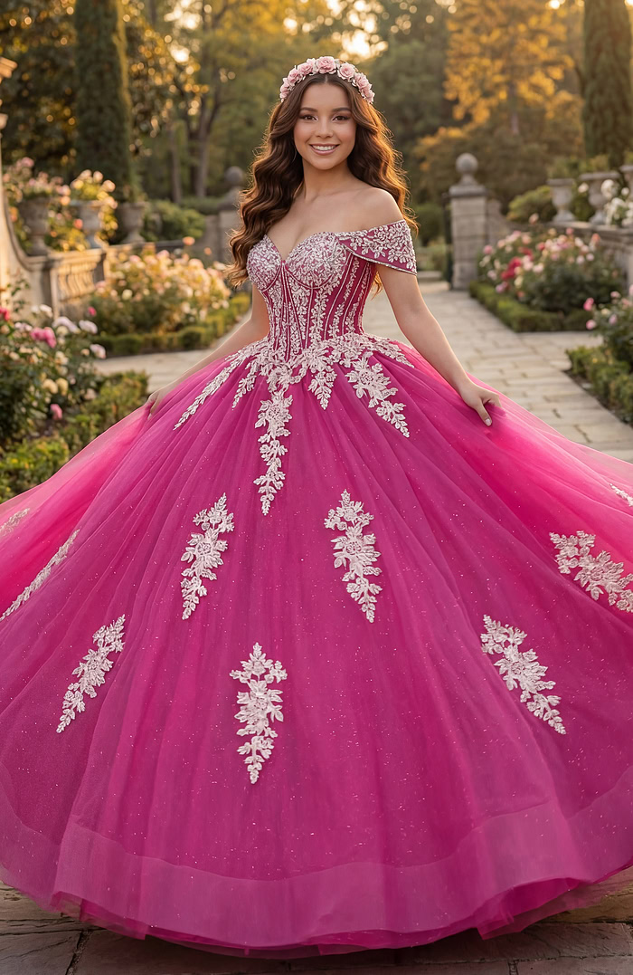 Off Shoulder Ball Gown with Beaded Corset Q47375