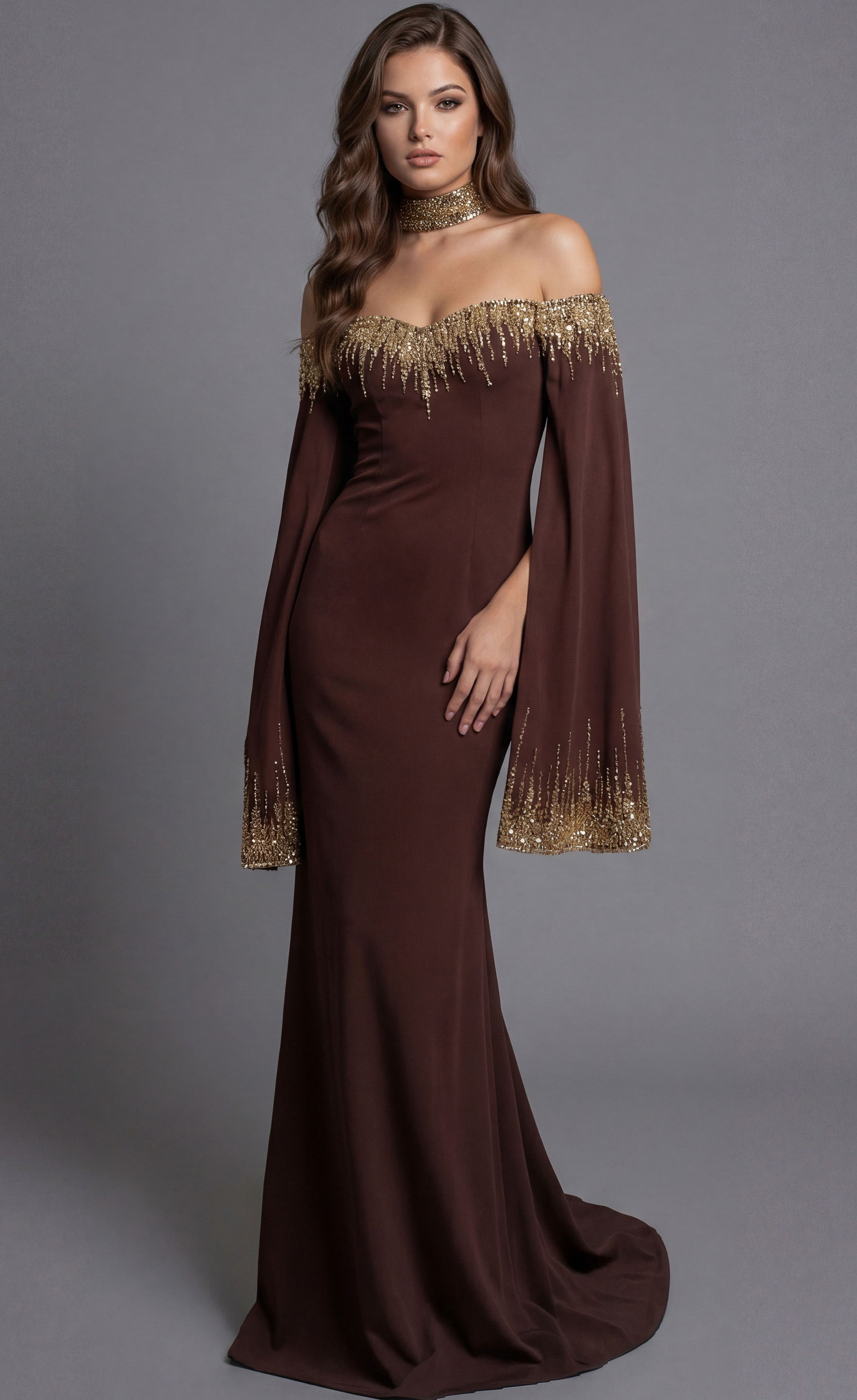 Metallic Jacquard Gown With Statement Bow Back 49382