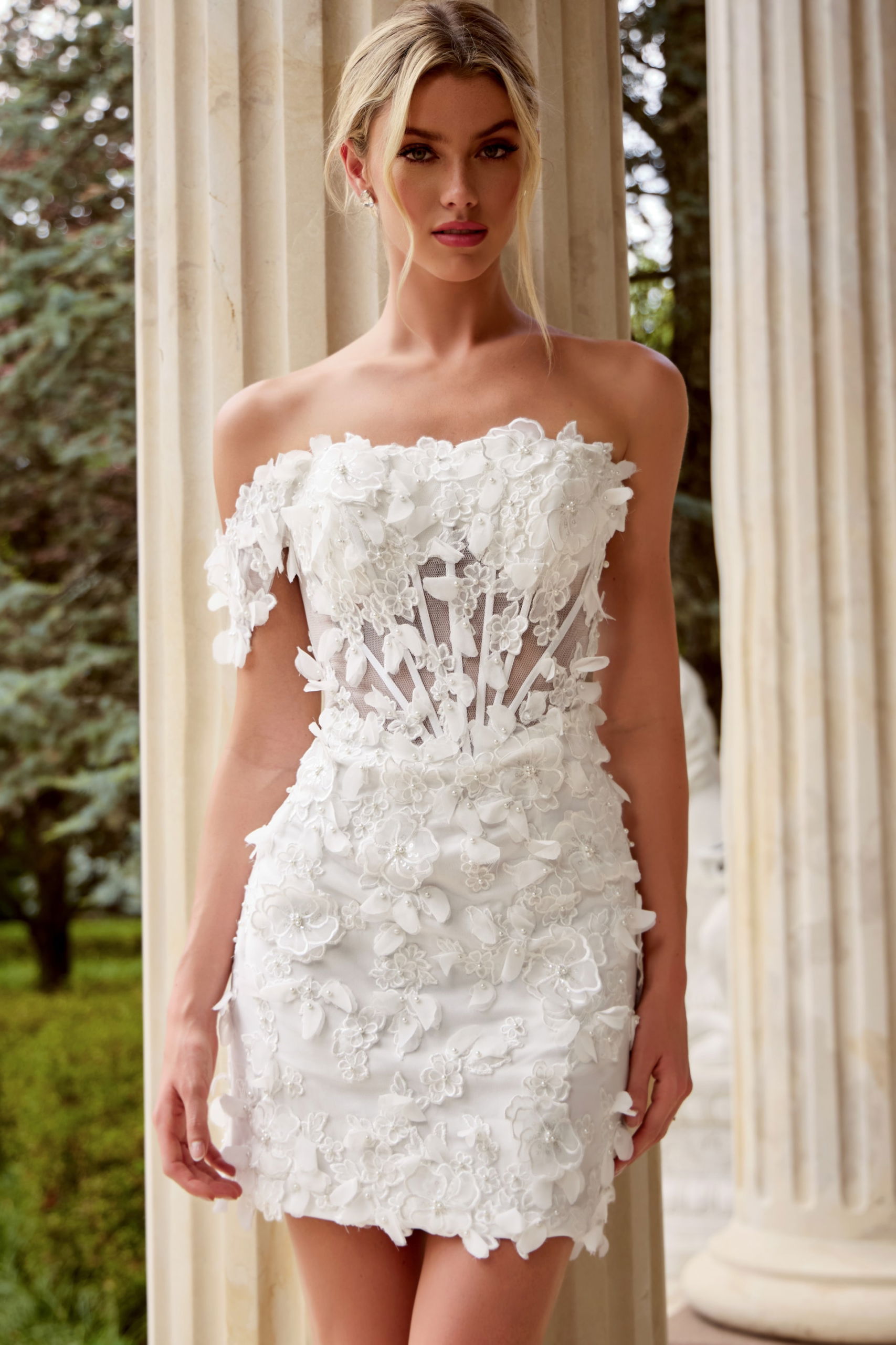 Illusion Bodice, Textured Floral Detailing, Fitted Mini Silhouette