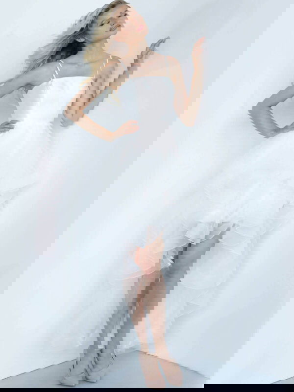 The Blue High Low Spaghetti Straps Kids Dress K66708 is a stunning creation for young fashionistas. This enchanting dress features a delicate corset back style, ensuring a perfect fit. The bodice is sleeveless with exquisite spaghetti straps, and the square neckline adds a touch of elegance. Crafted from luxurious organza fabric, the layered skirt design creates a mesmerizing silhouette that is fit and flare, making it ideal for any special occasion. The dress is adorned with playful ruffles that bring an extra layer of joy and sophistication. Its tea-length design allows for both comfort and style, making it a whimsical choice for young girls wanting to make a statement.