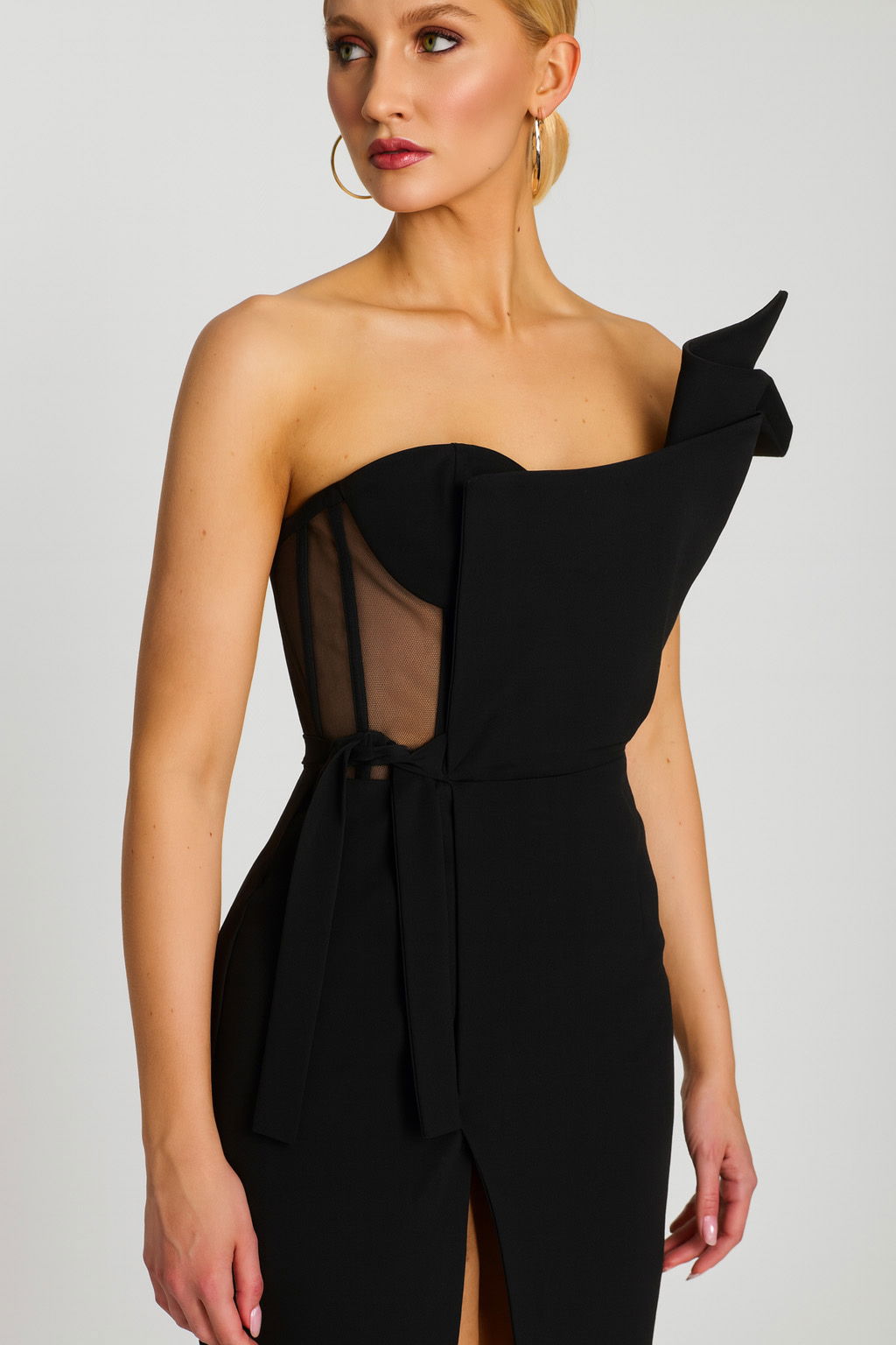 One Shoulder Ivory Midi Dress With Front Slit 48205