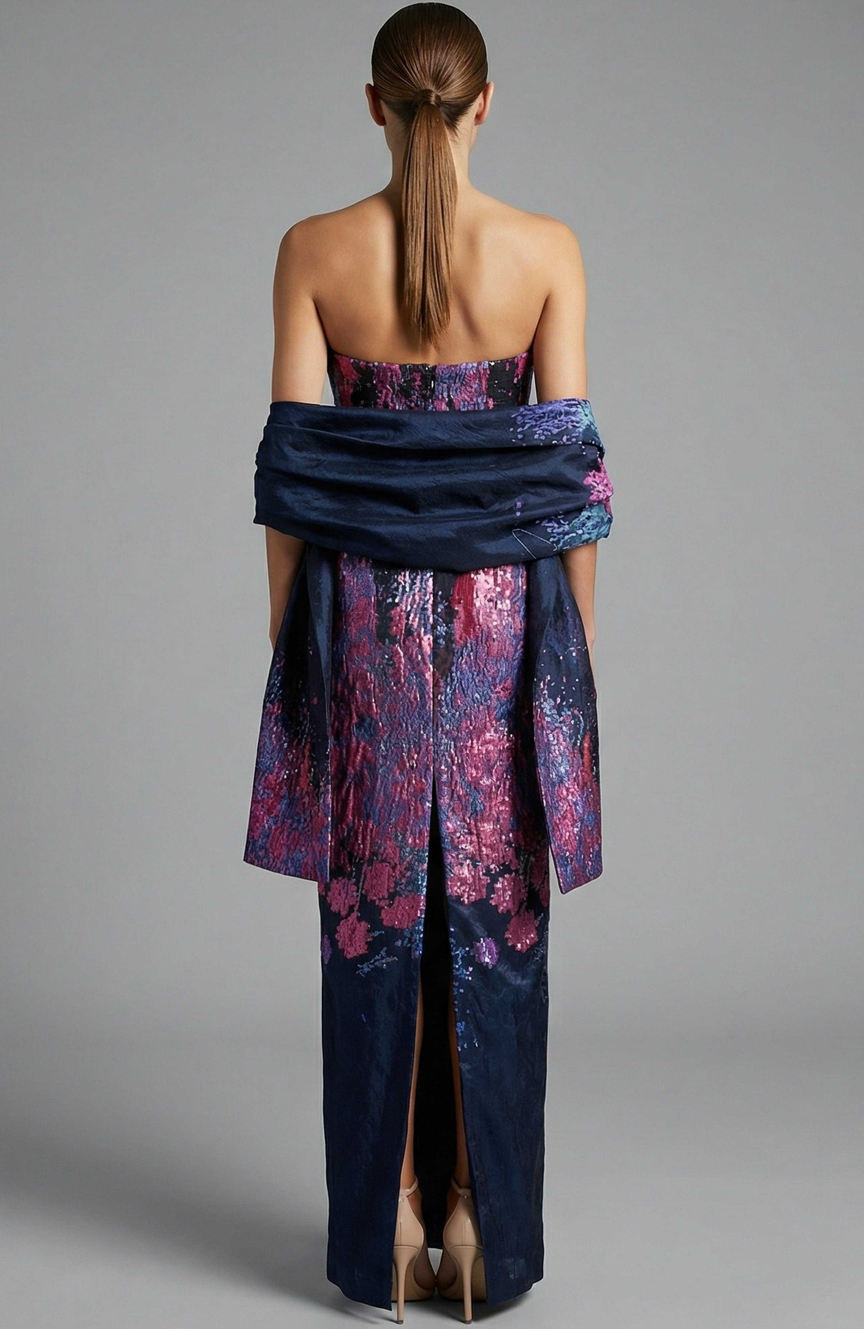 Strapless Draped Satin Gown With Sculpted Waist 49361