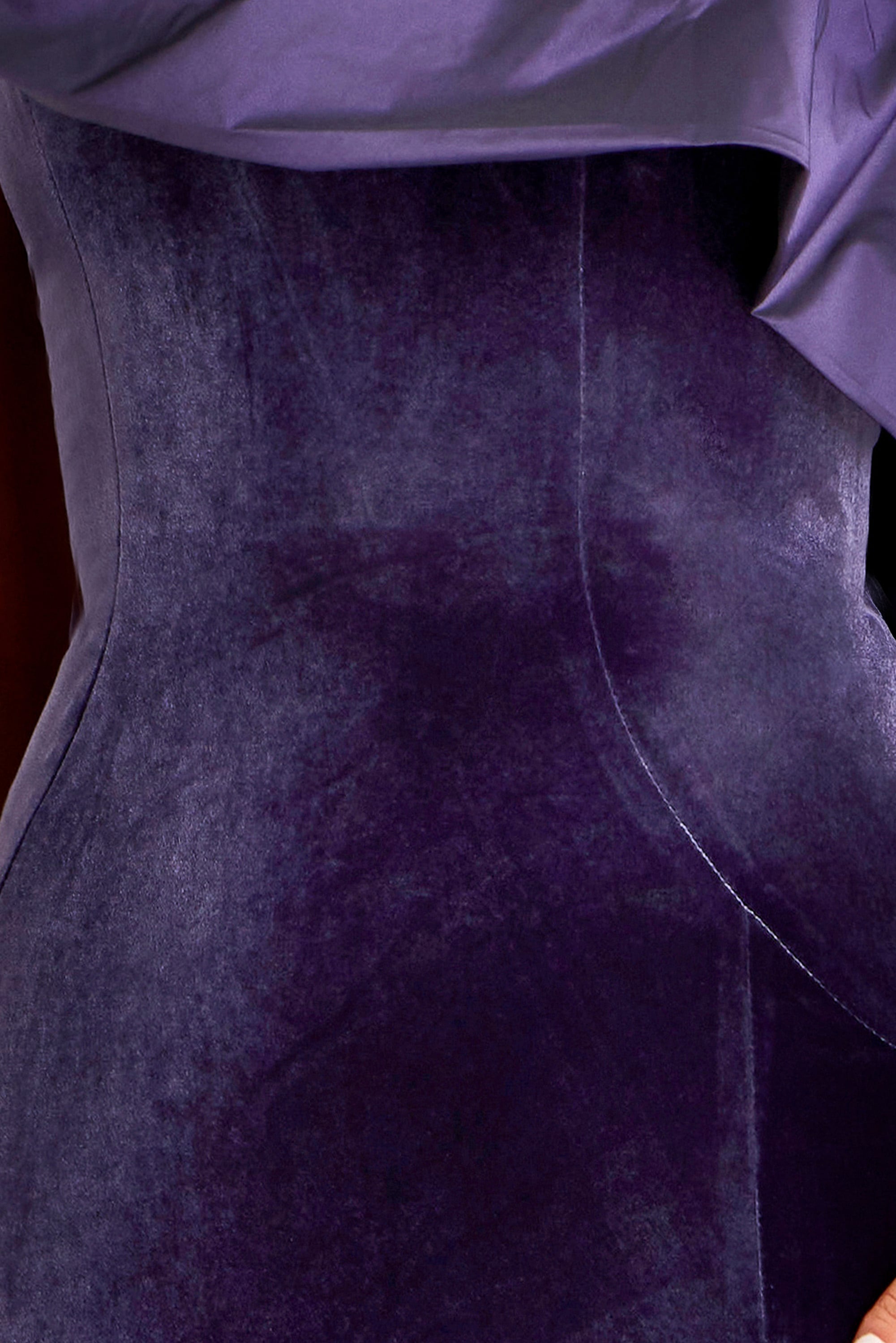 One Shoulder Purple Velvet Gown with Ruffle Detail 39887