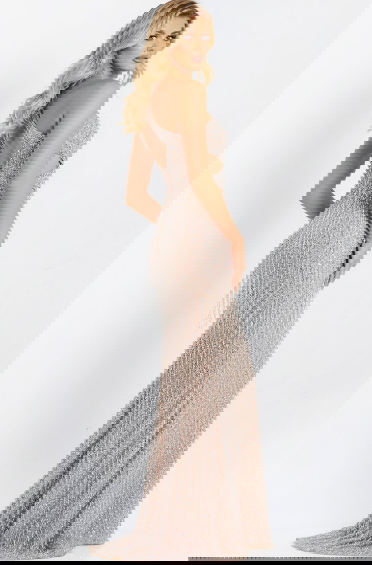 One Shoulder Sequin Gown with Cutouts 46214