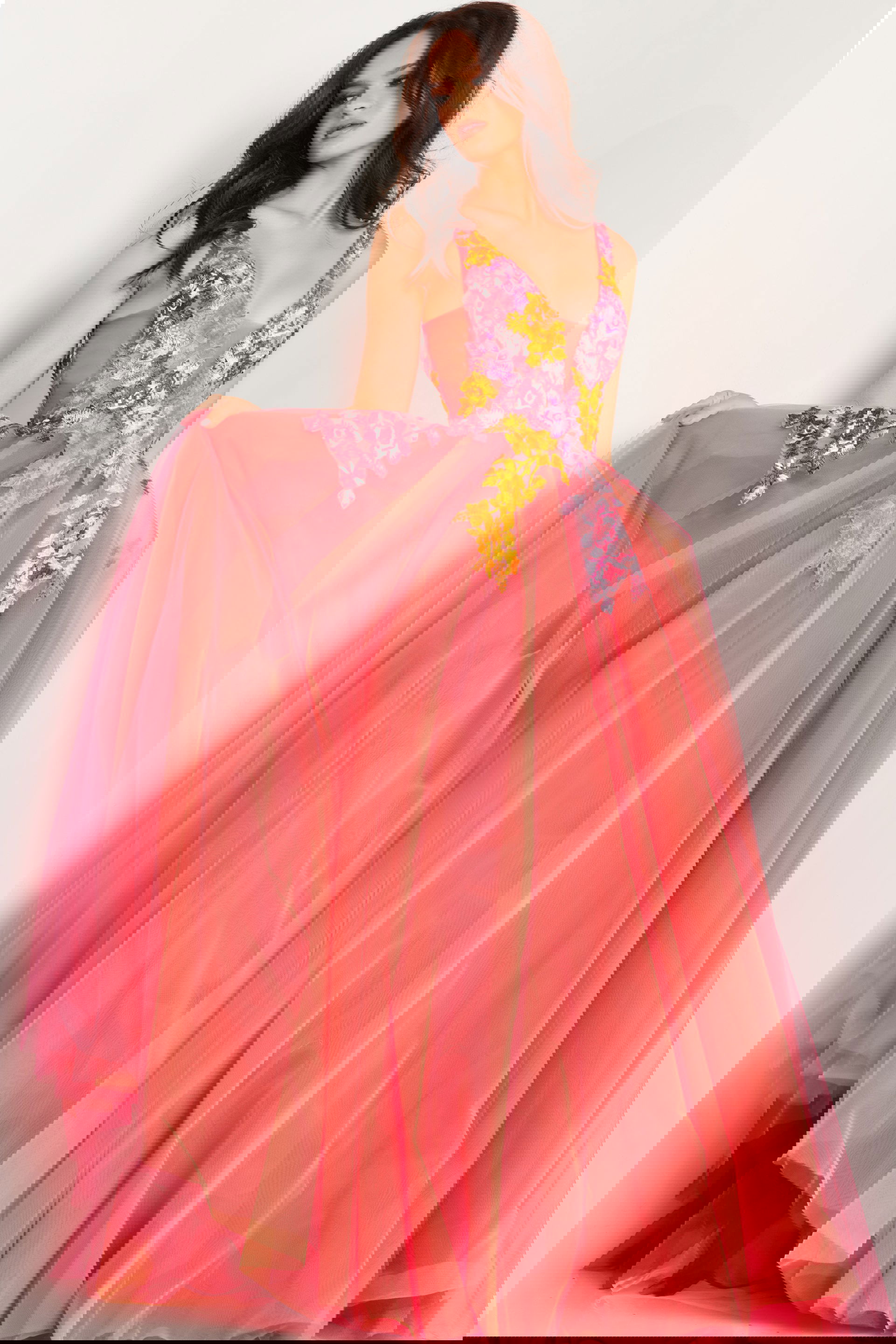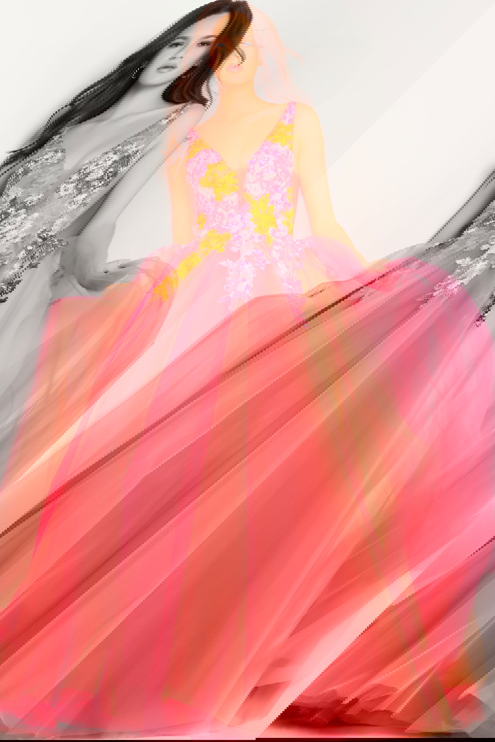The Jovani 25800 is available in a stunning orange/multi color combination, offering a unique and captivating choice to suit various style preferences and skin tones.