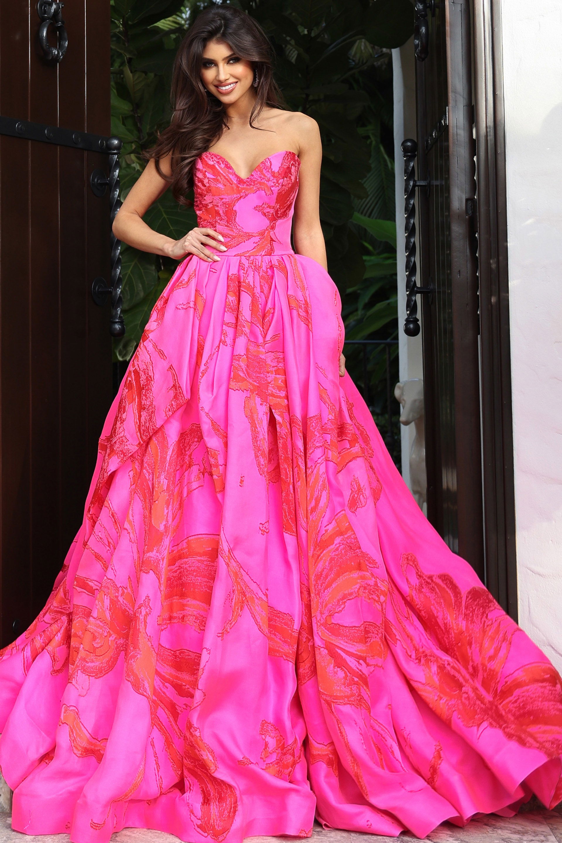 Pink Strapless Ball Gown With Floral Print S40409
