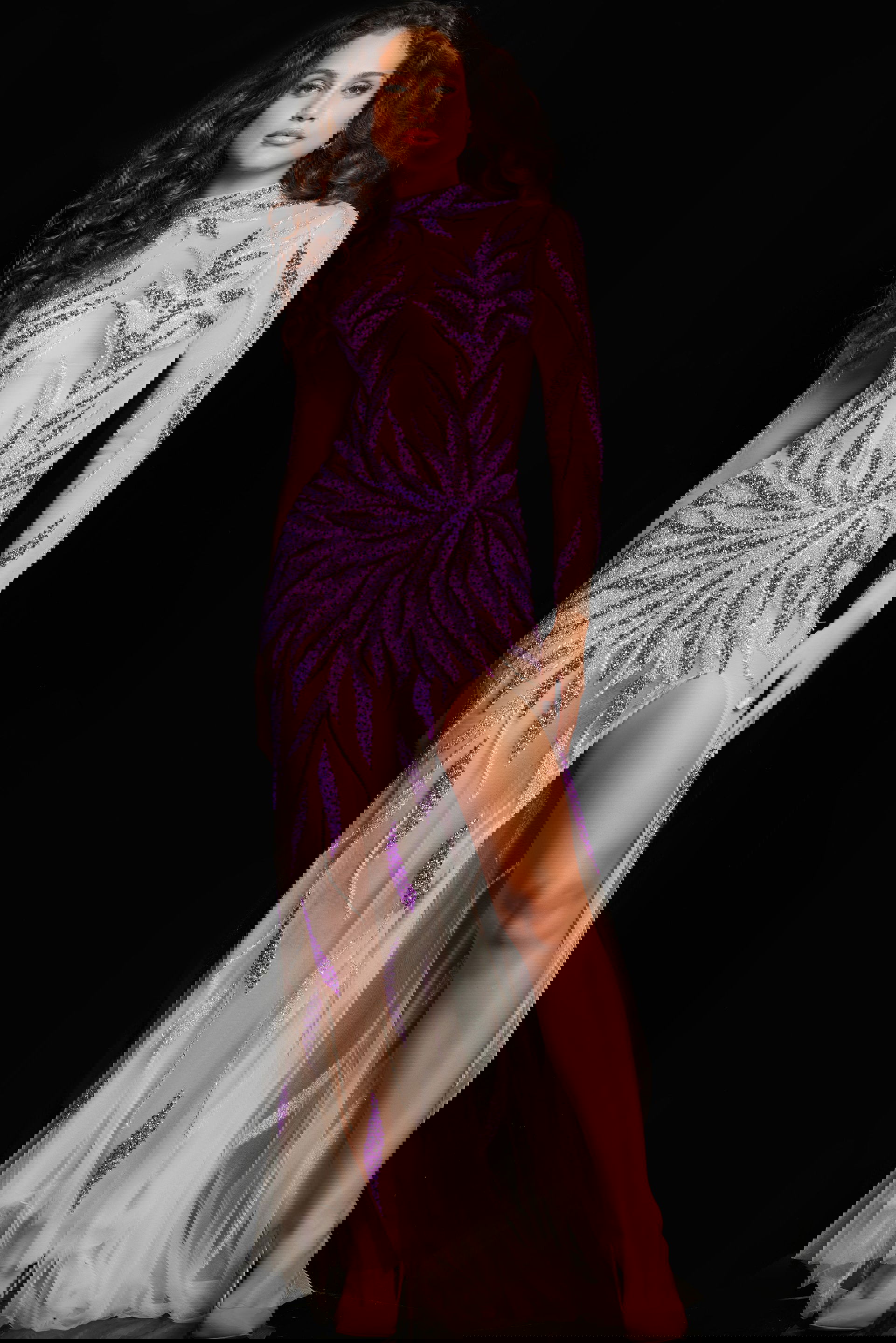 Available in distinctive colors like purple/nude and gunmetal, the Jovani 26264 offers unique and captivating options for formal occasions. Care instructions recommend spot dry cleaning only to preserve the delicate nature of the gown. Available in sizes 00 to 24, this dress ensures a versatile fit for various body types, making it a statement piece for any formal event.