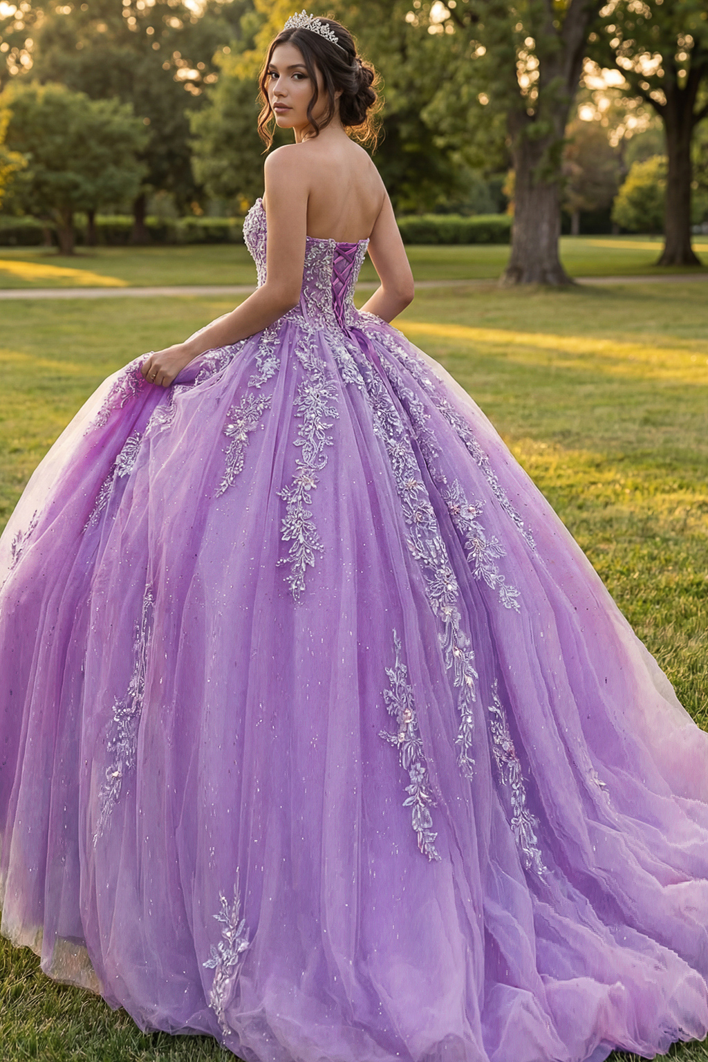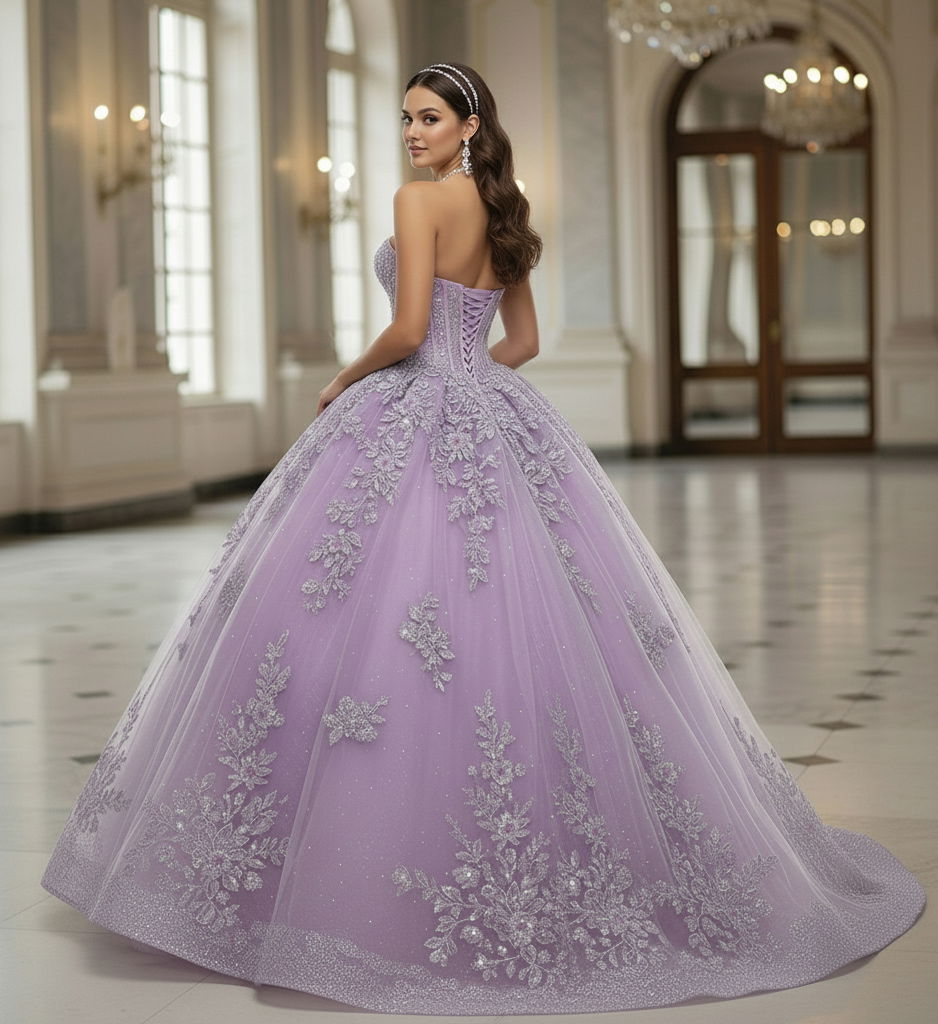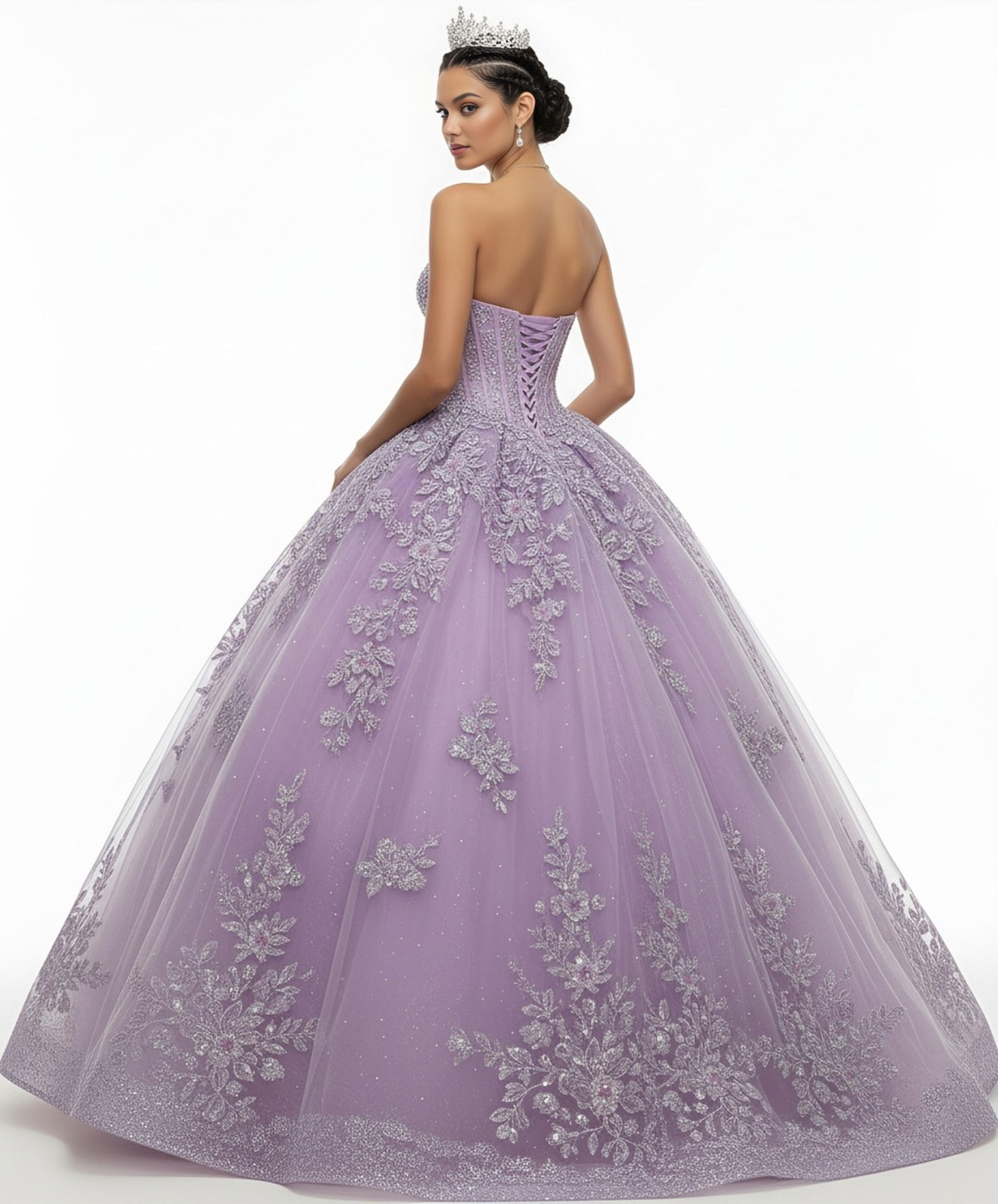 Quinceañera Dress with Glitter and Floral Lace Q43432
