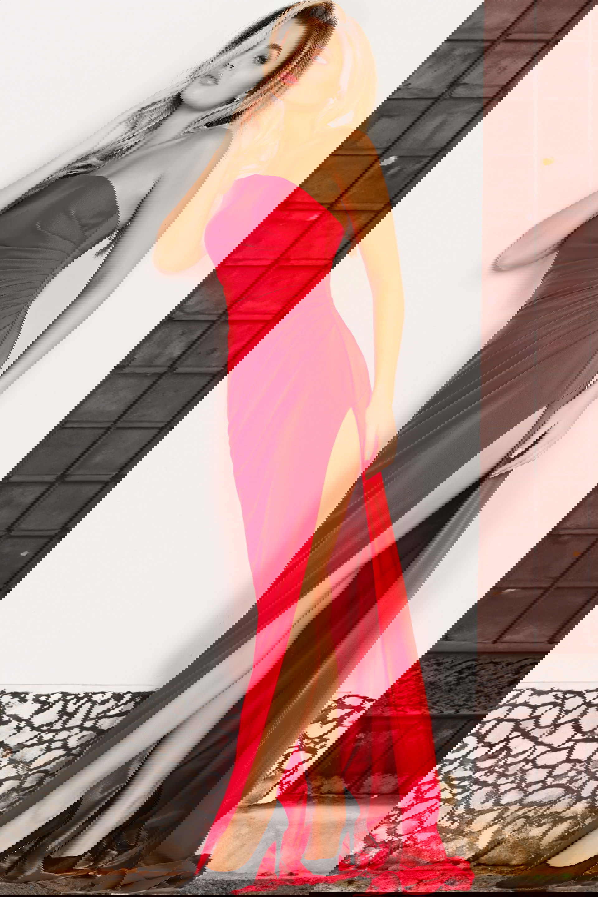 Red Asymmetric Strapless Neck Dress 26166