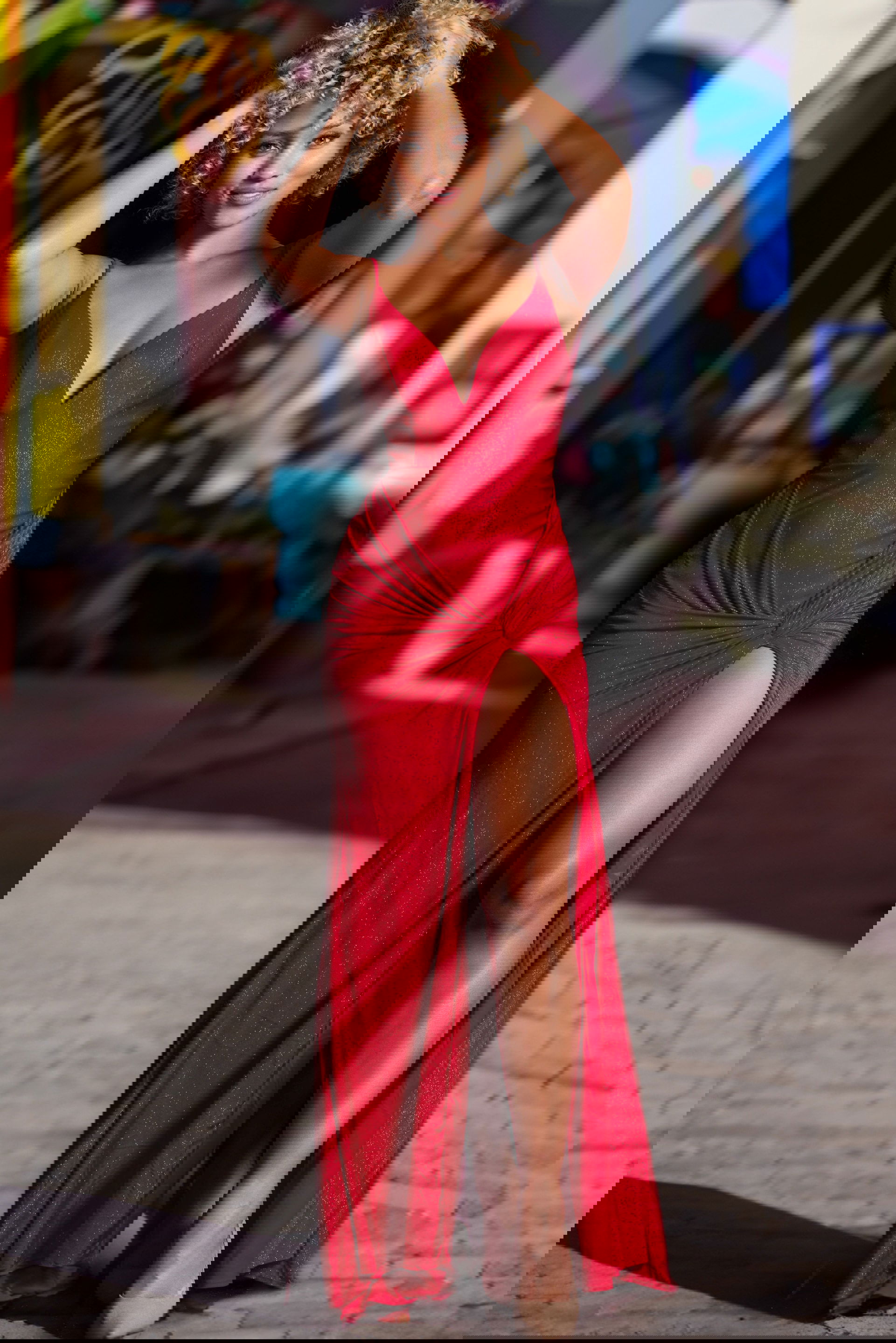 Dazzle at your next formal event in this stunning red mermaid gown. Featuring a high slit, sleeveless design, and a flattering V-neckline, this long gown is crafted from luxurious jersey fabric. The gown is designed to accentuate your curves with its figure-hugging fit and flare silhouette, making it an exceptionally glamorous choice for any special occasion.
