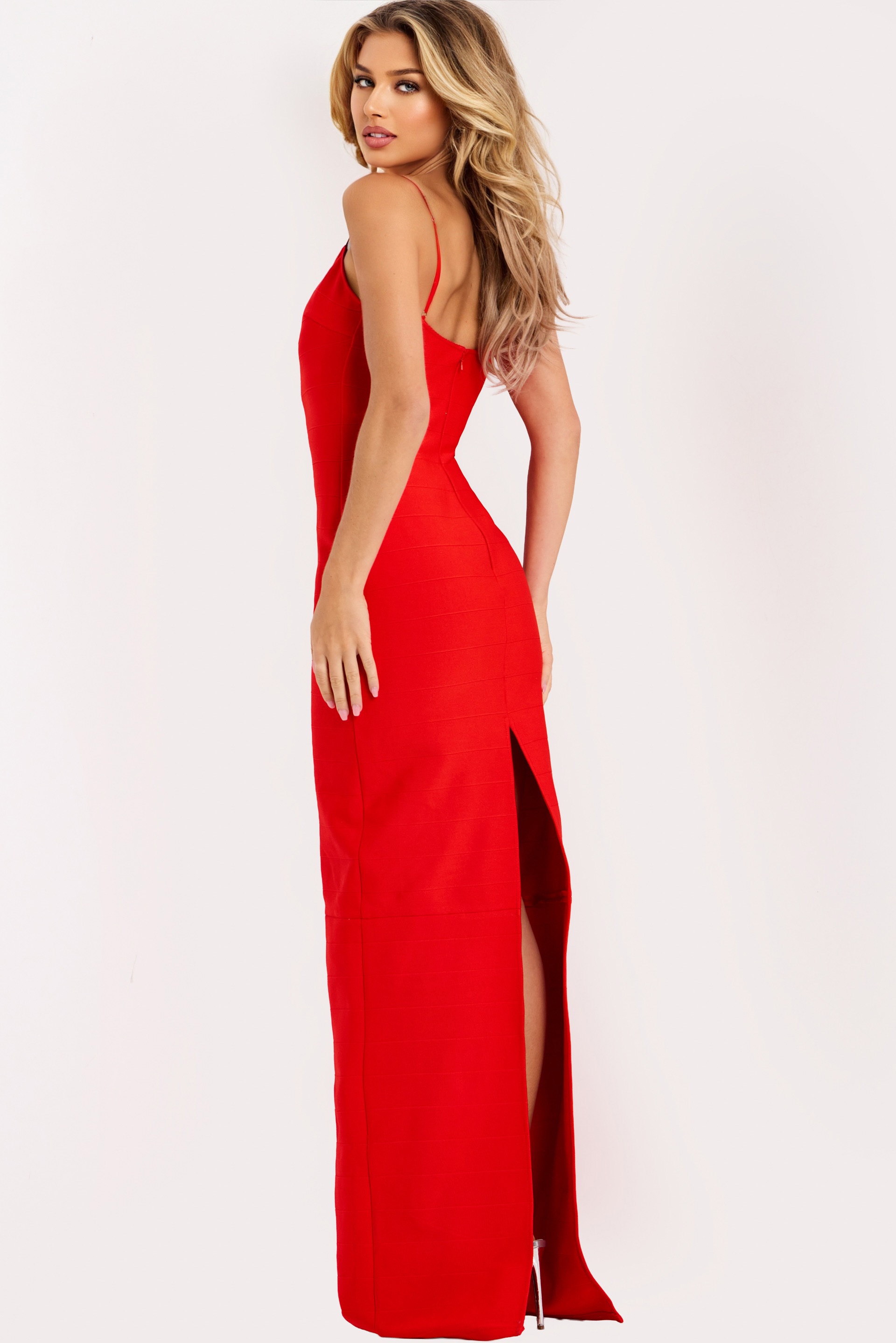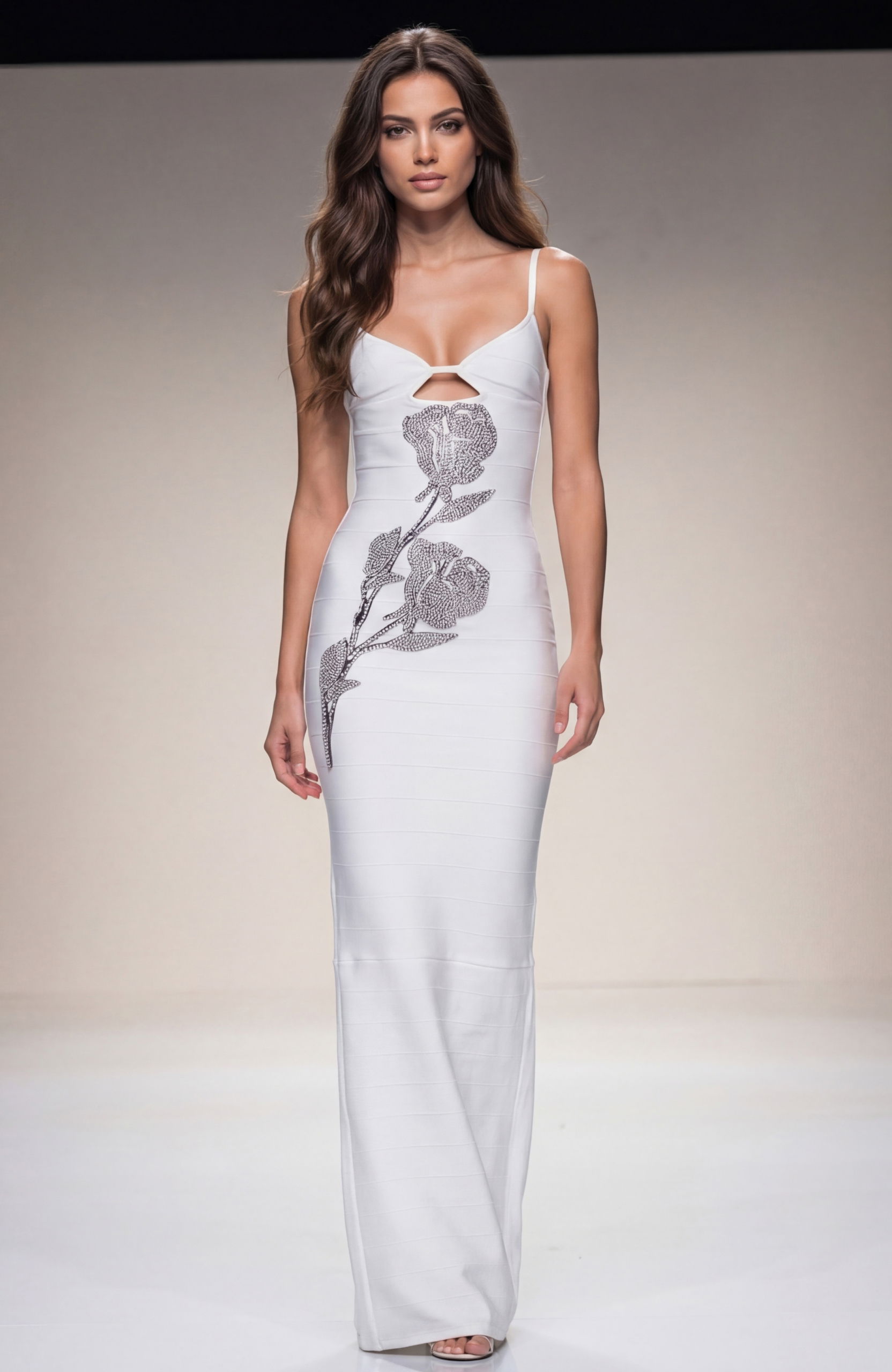 Rhinestone Rose Bodycon Gown with Cutou 50236