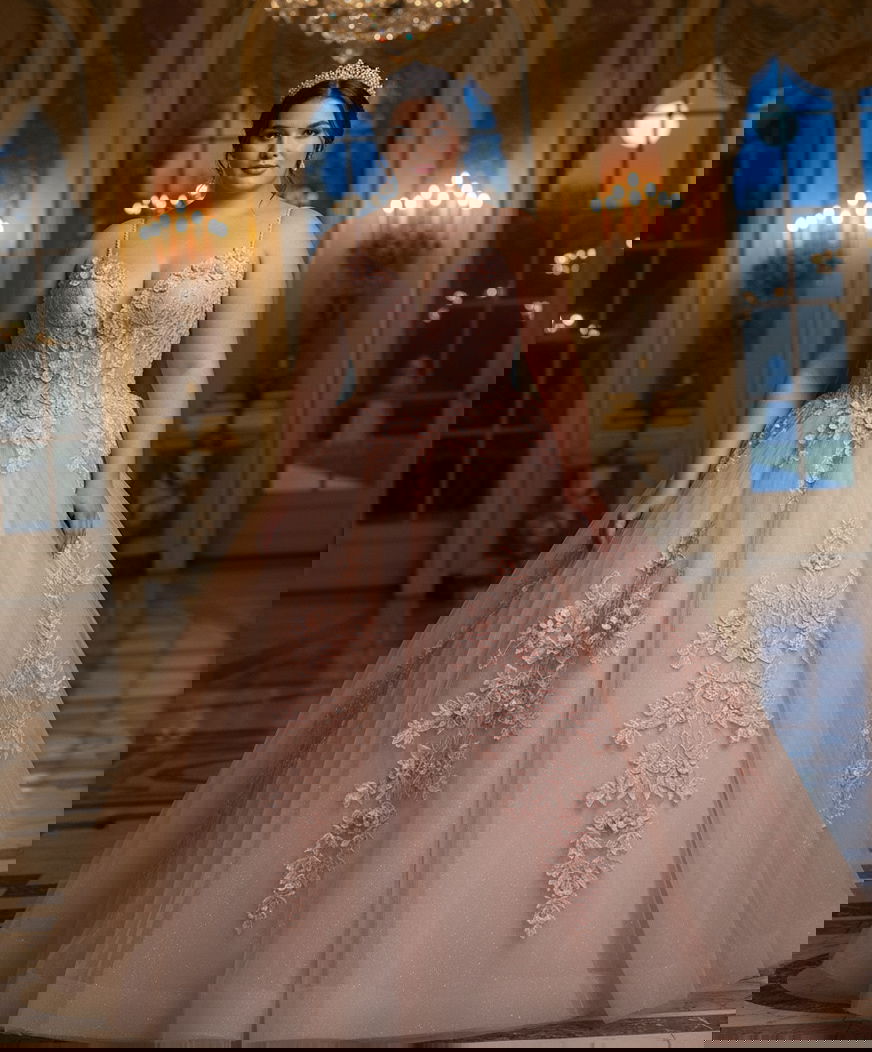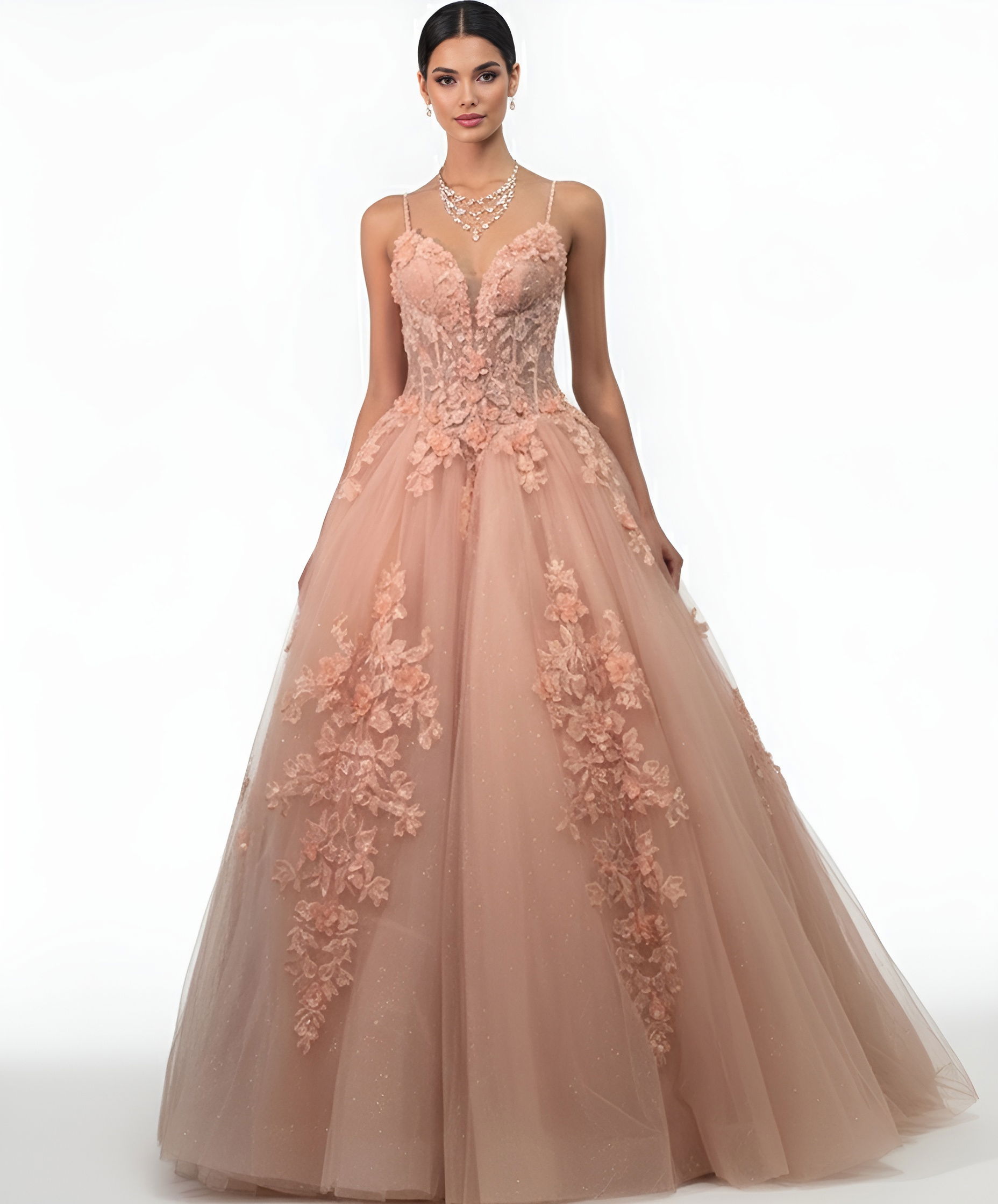 Rose Gold Quinceañera Dress with Floral Appliques Q43431