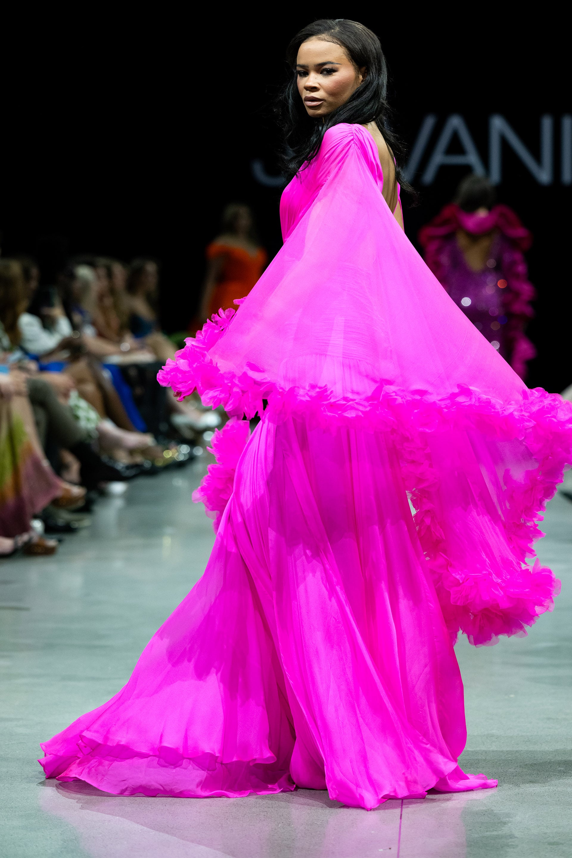 Fuchsia Long Couture Dress S36352 is an exquisite masterpiece, boasting a fuchsia hue that commands attention. This couture dress features a stylish high slit and is crafted from luxurious chiffon fabric, providing an elegant drape and flow. The V-neckline adds a sophisticated touch, while the sleeveless design ensures a comfortable fit. Additionally, the dress is adorned with ornate ruffles that lend a whimsical flair to the overall aesthetic. Perfect for making a statement at any upscale event, this floor-length dress embodies high fashion and exceptional craftsmanship.