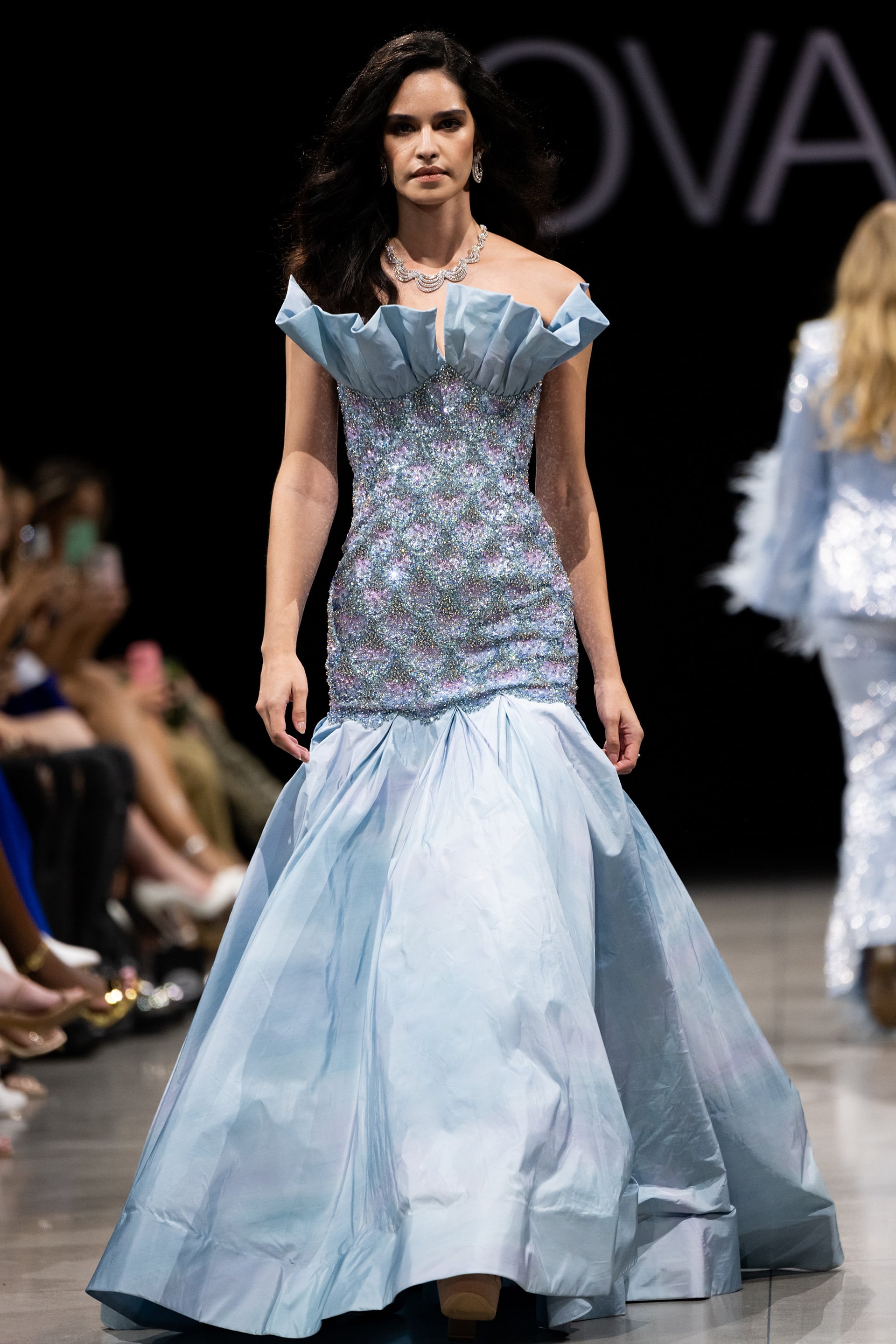 Multi Color Embellished Strapless Couture Dress S39129. This stunning couture dress features a mesmerizing blend of multicolor beaded embellishments that shimmer and shine with every movement. The strapless neckline is adorned with elegant ruffles, adding a touch of romance to this exquisite creation. The mermaid silhouette hugs your curves through the bodice and hips, flaring out into a dramatic floor-length skirt crafted from luxurious taffeta fabric. Designed for those who wish to make a grand entrance, this dress is perfect for red carpet events, galas, and high-profile parties. Embrace the glamour and sophistication of this unforgettable gown.