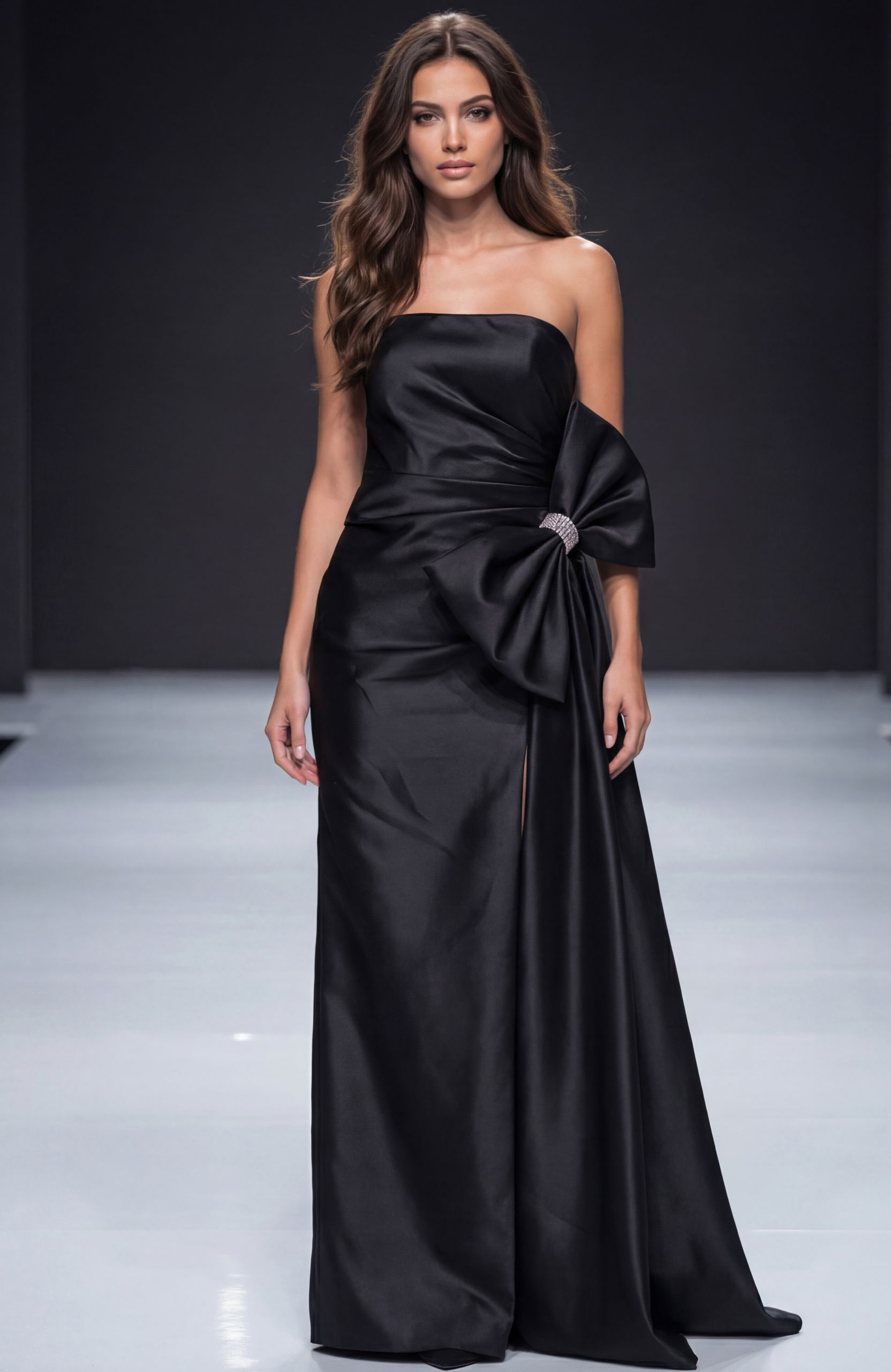 Satin Gown With Side Bow 48676