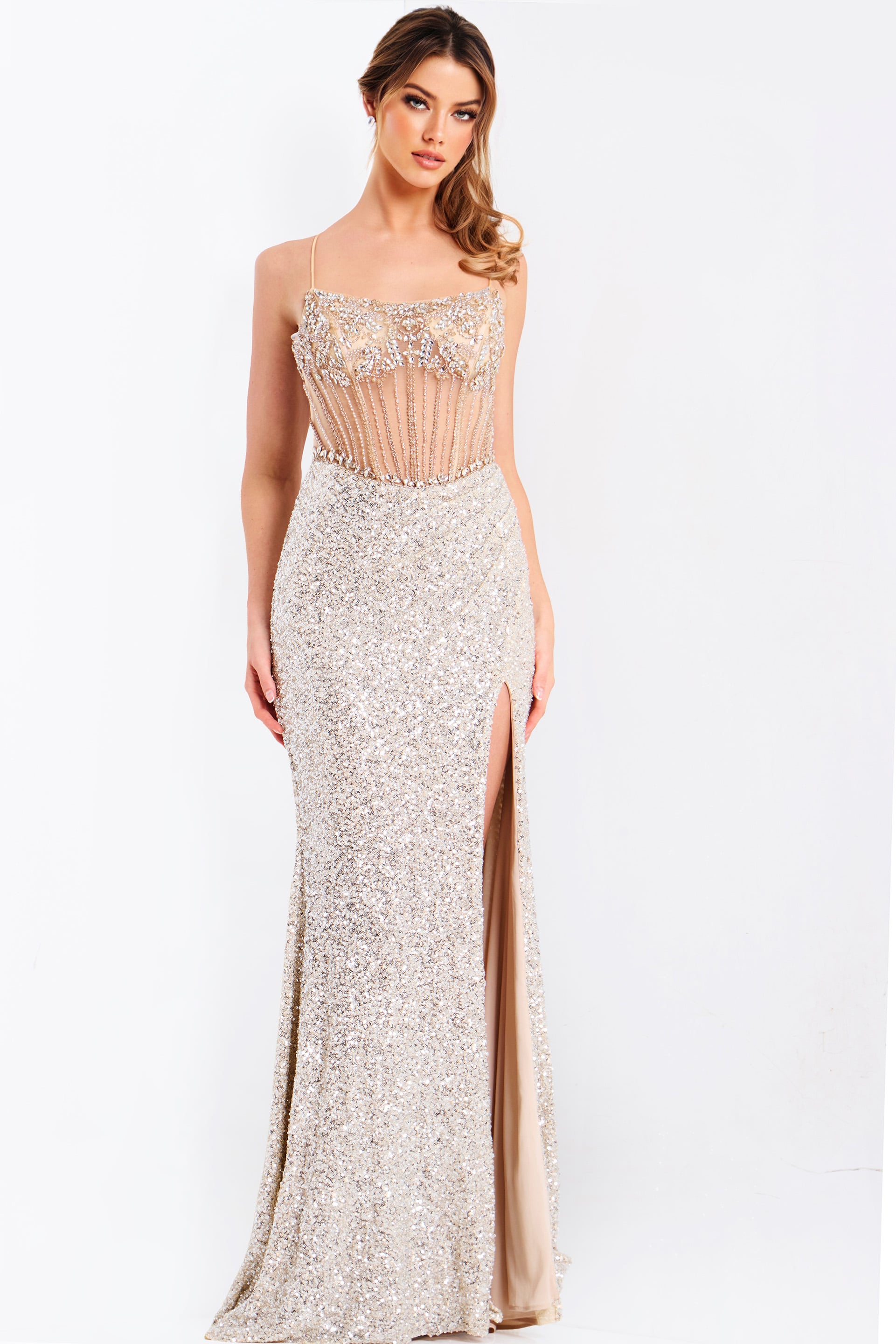 Sequin Corset Dress With High Slit 49611
