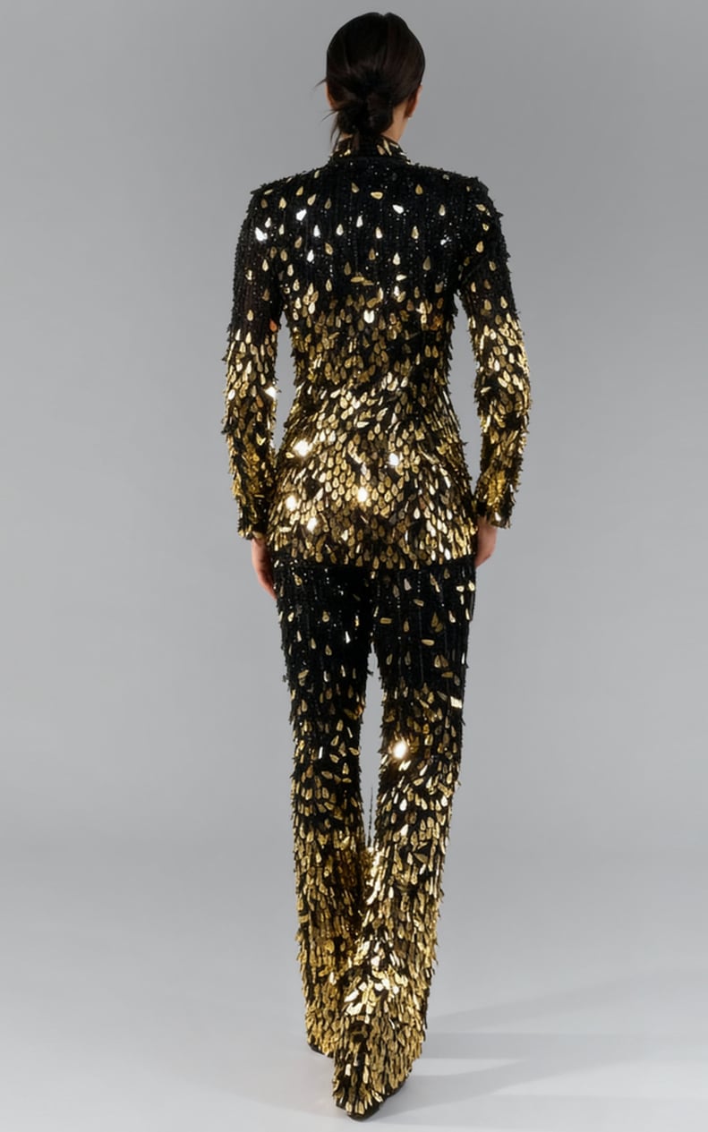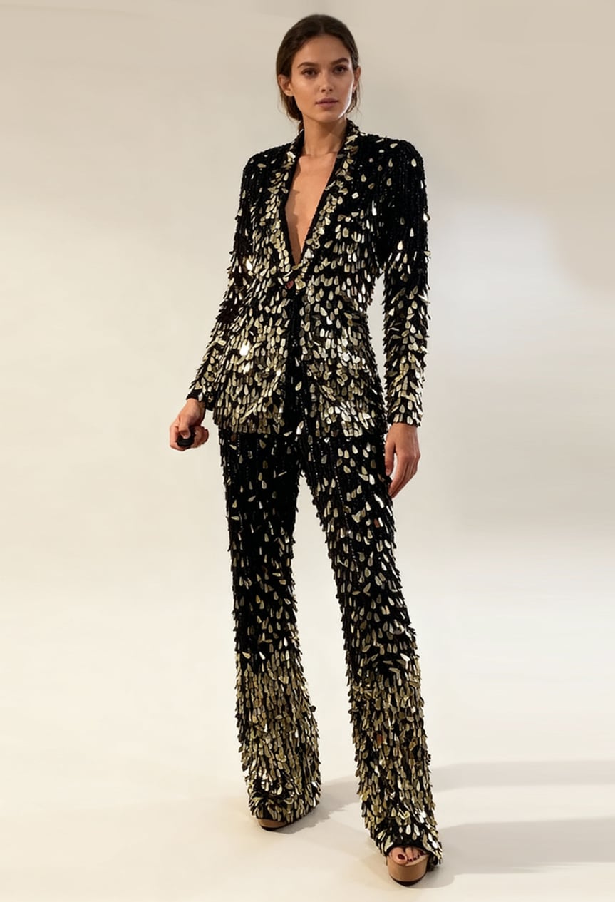 Floral Jacquard Tailored Suit With Deep V Jacket 49164
