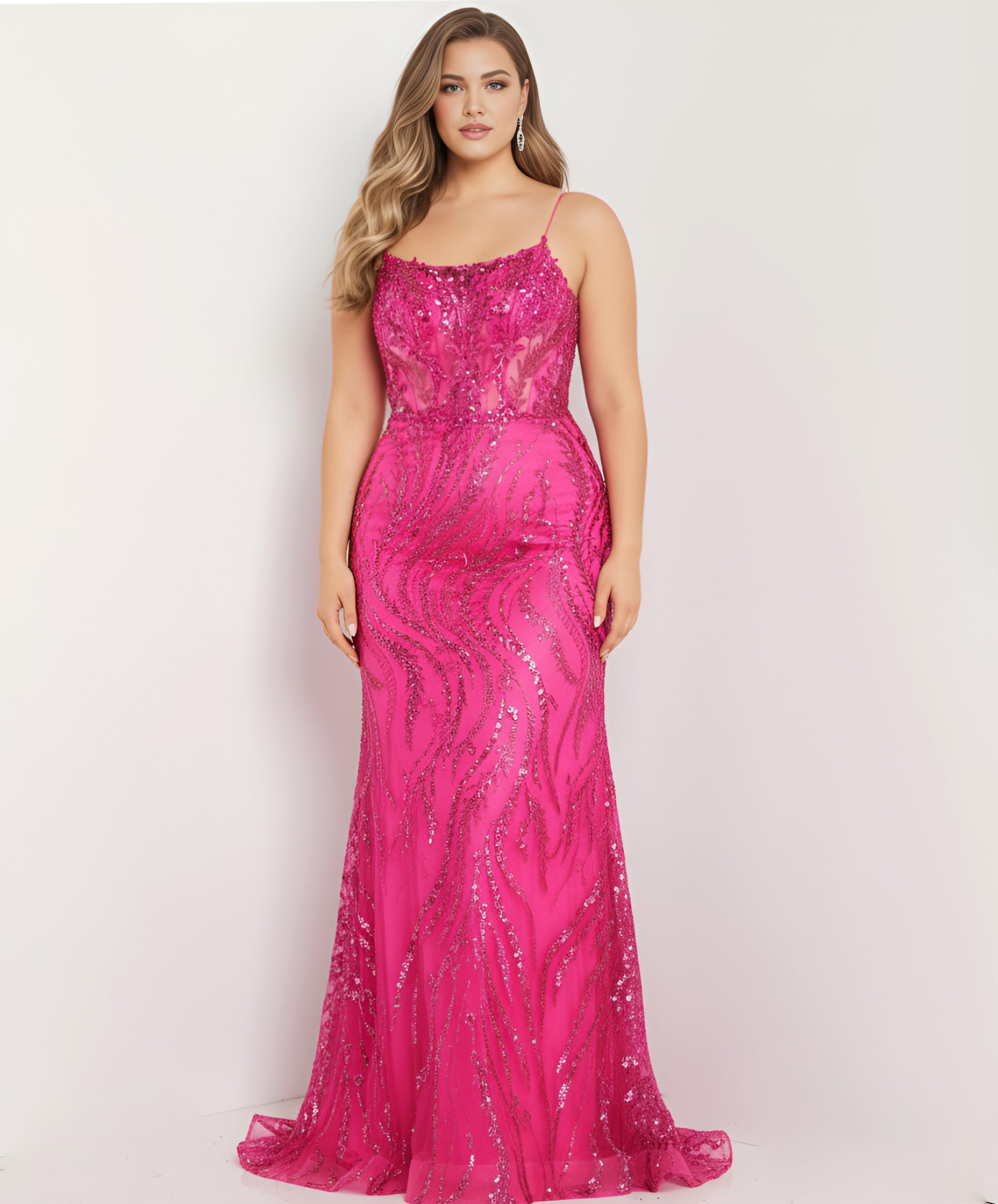 Sheer Bodice, Beaded Pattern, Sweep Train, Fitted Waist