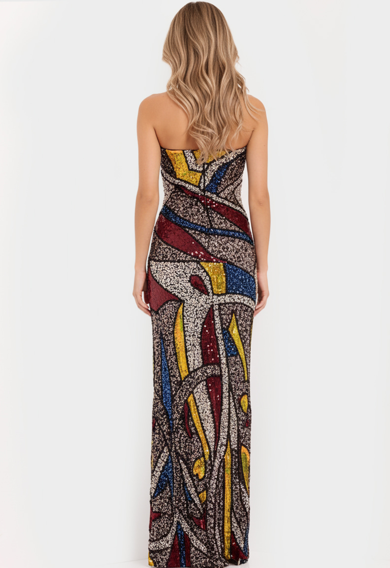 Sequin Gown with Color Block Mosaic Design 48617
