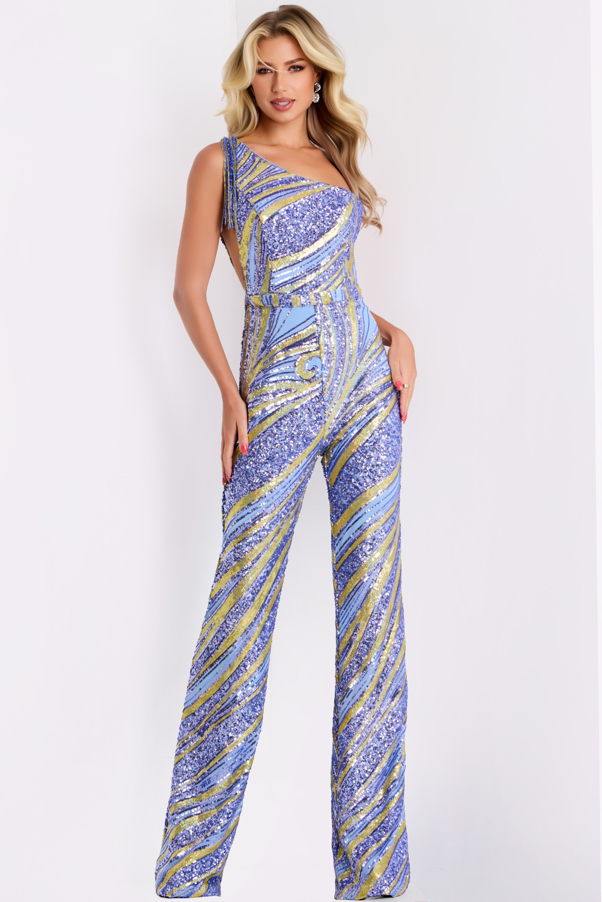 Sequin One Shoulder Jumpsuit with Open Back 36846