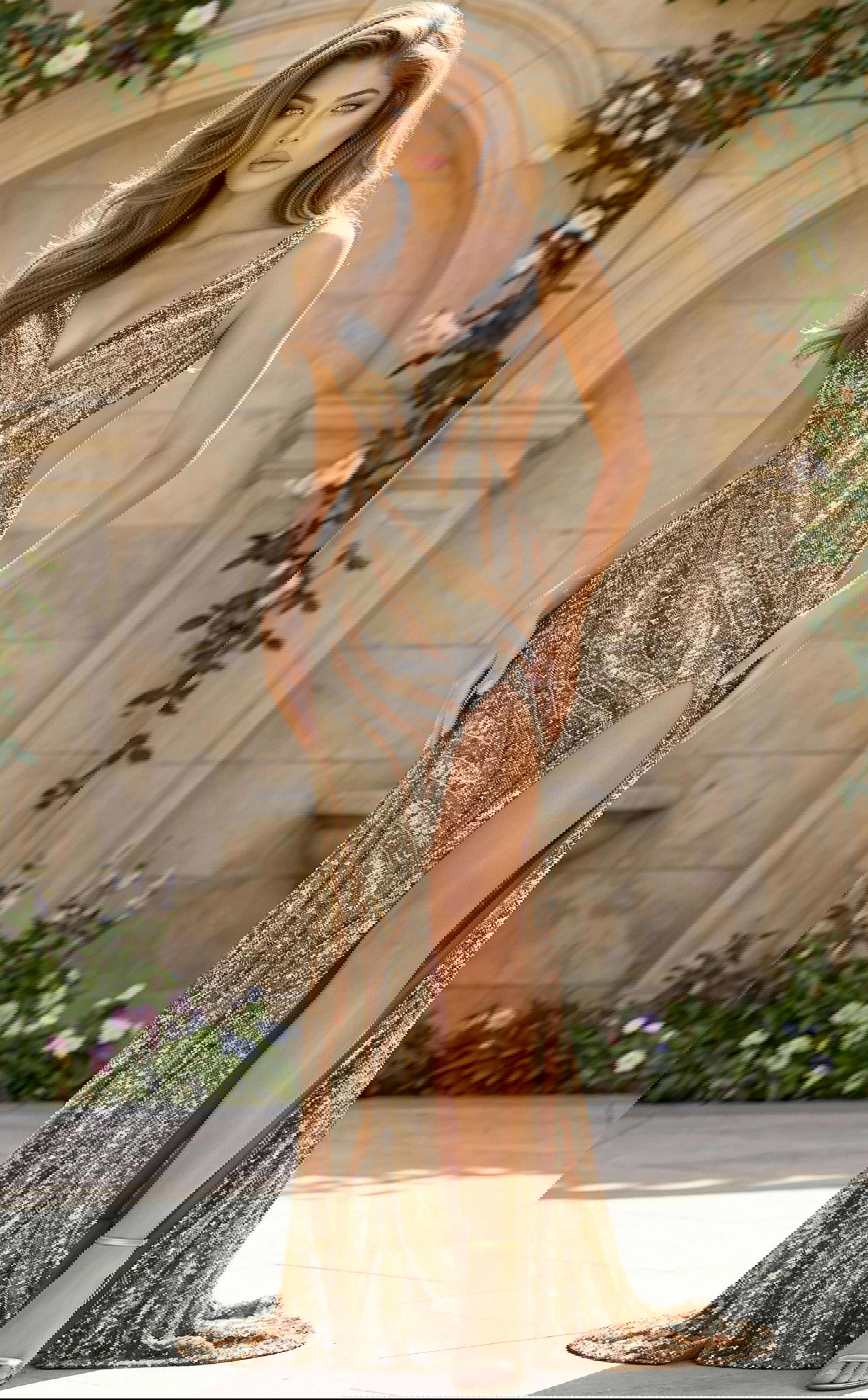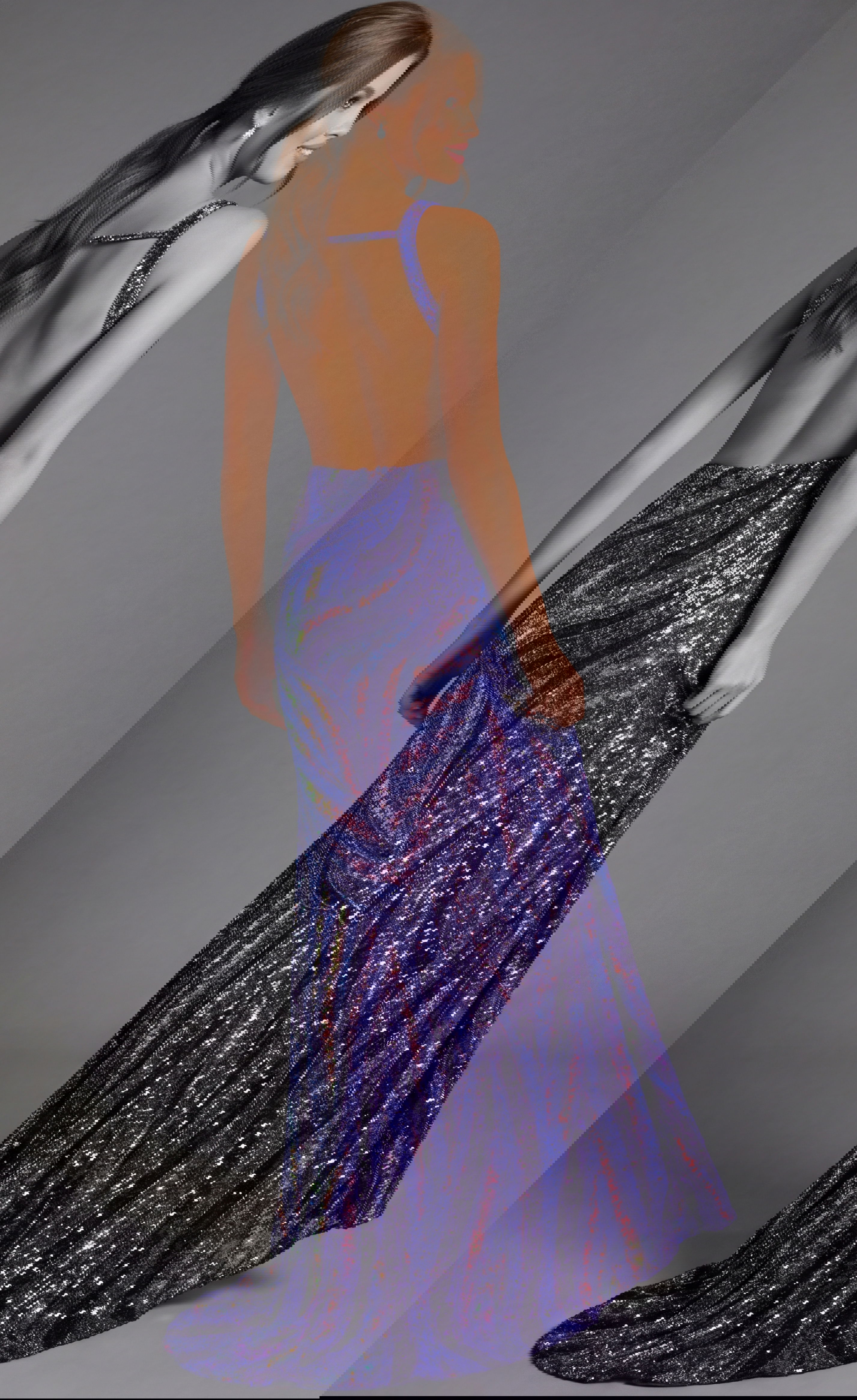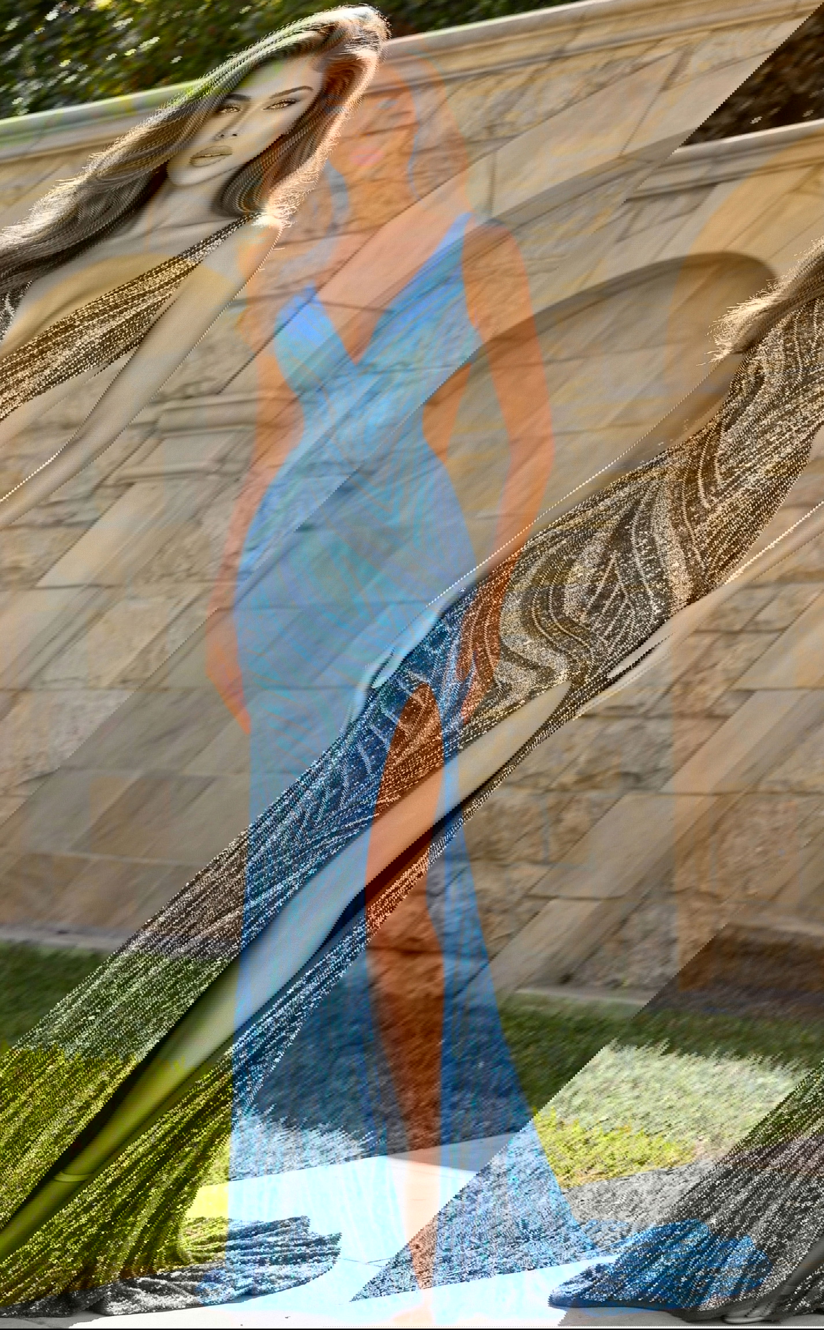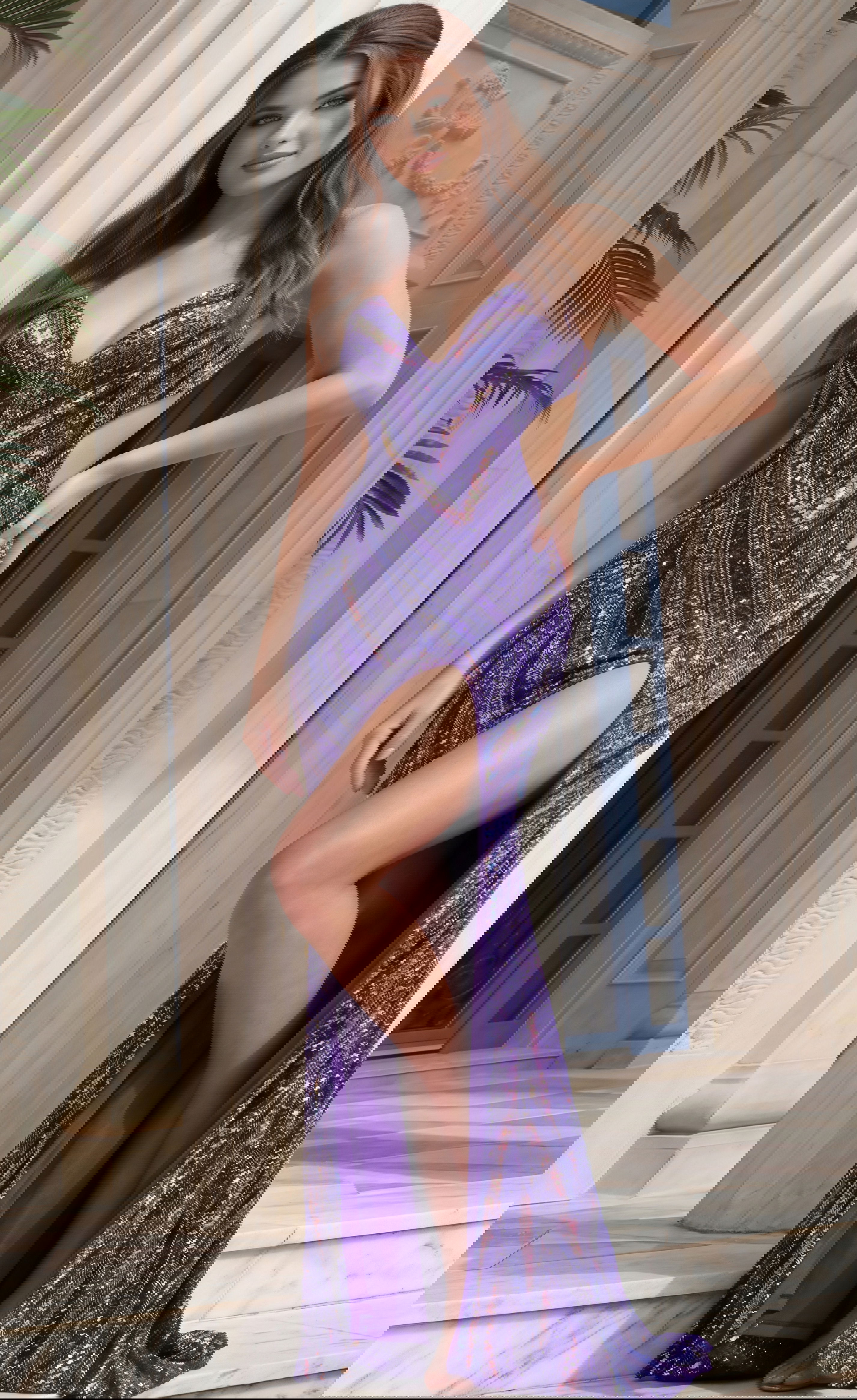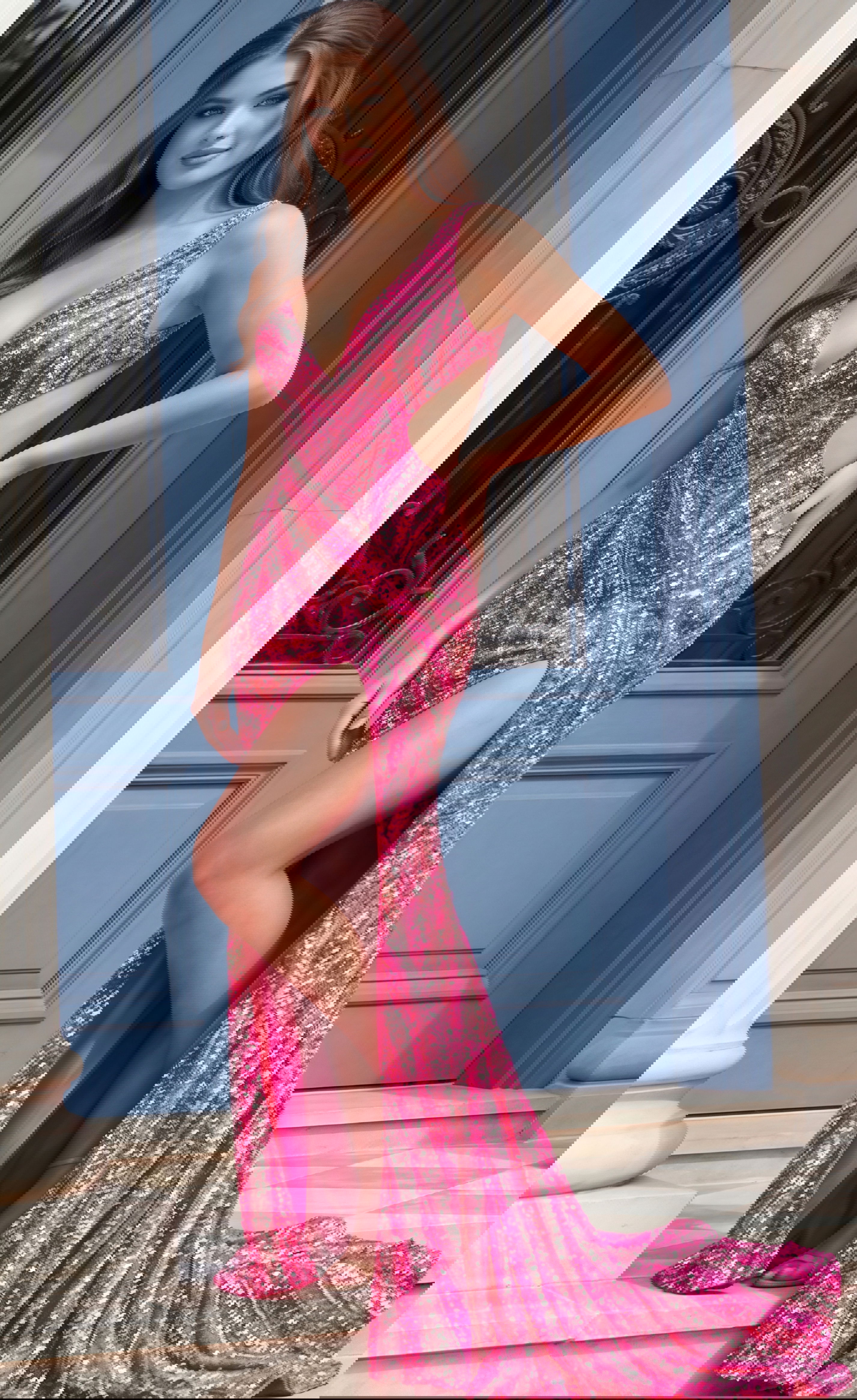 Sequin Plunge Neck High Slit Fitted Gown 47793