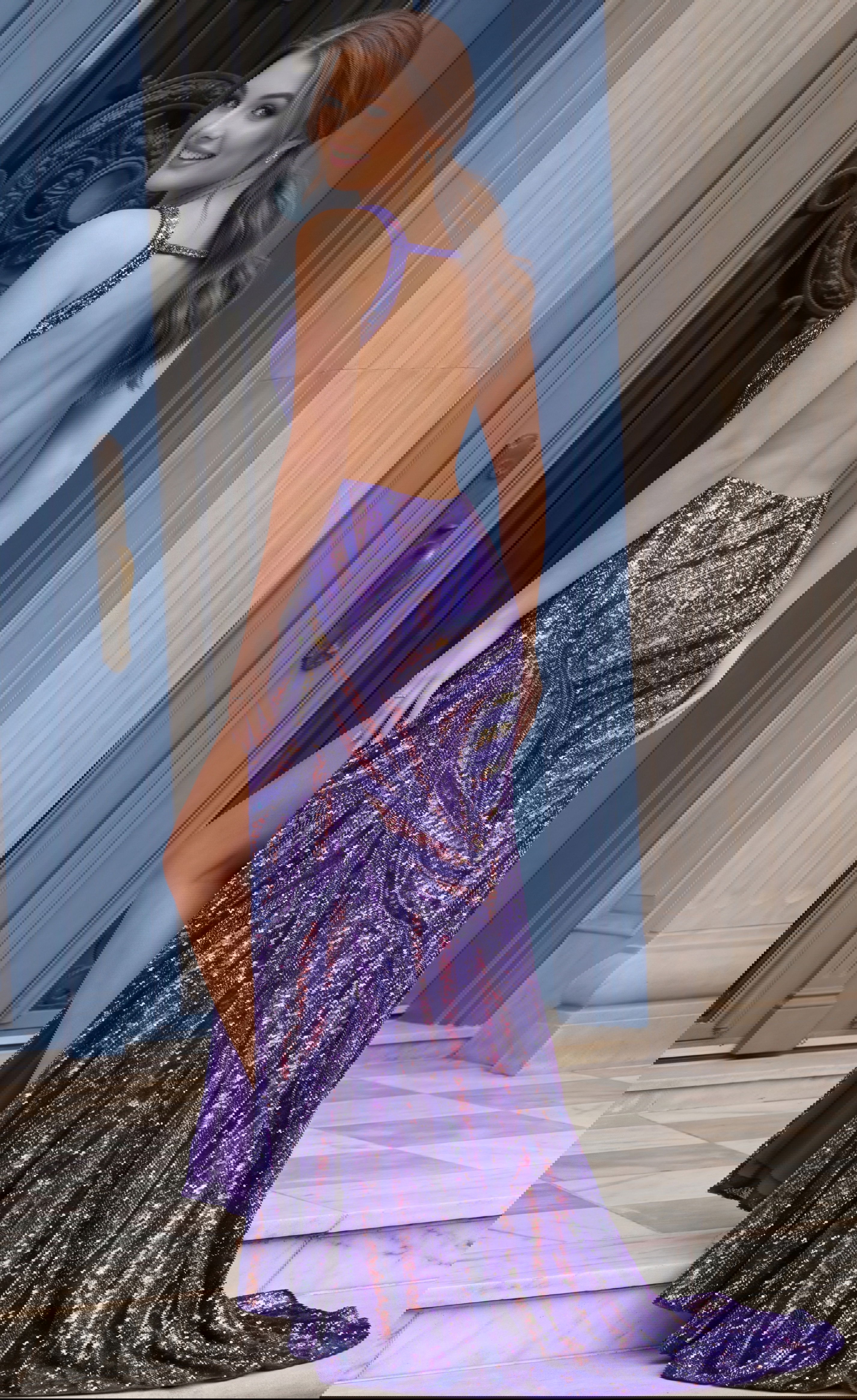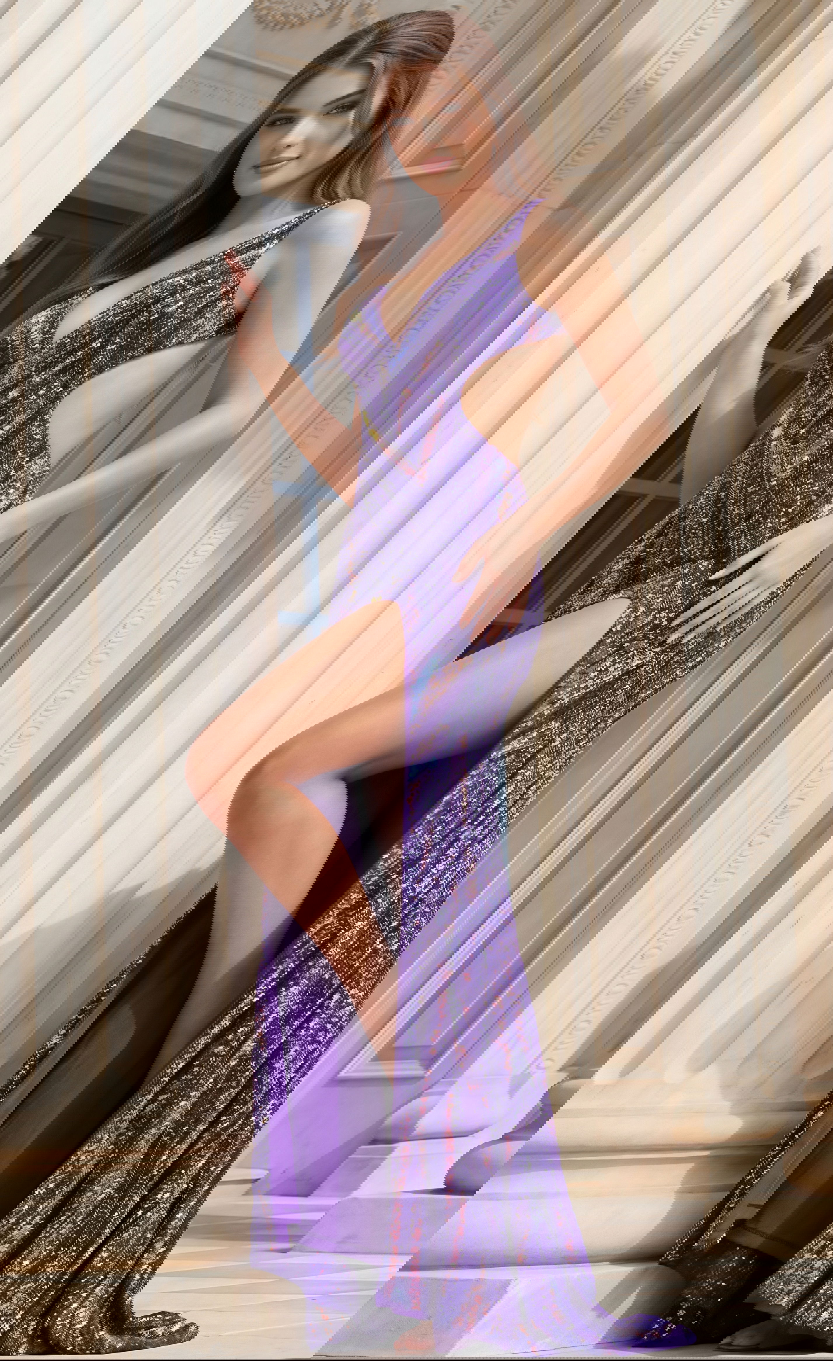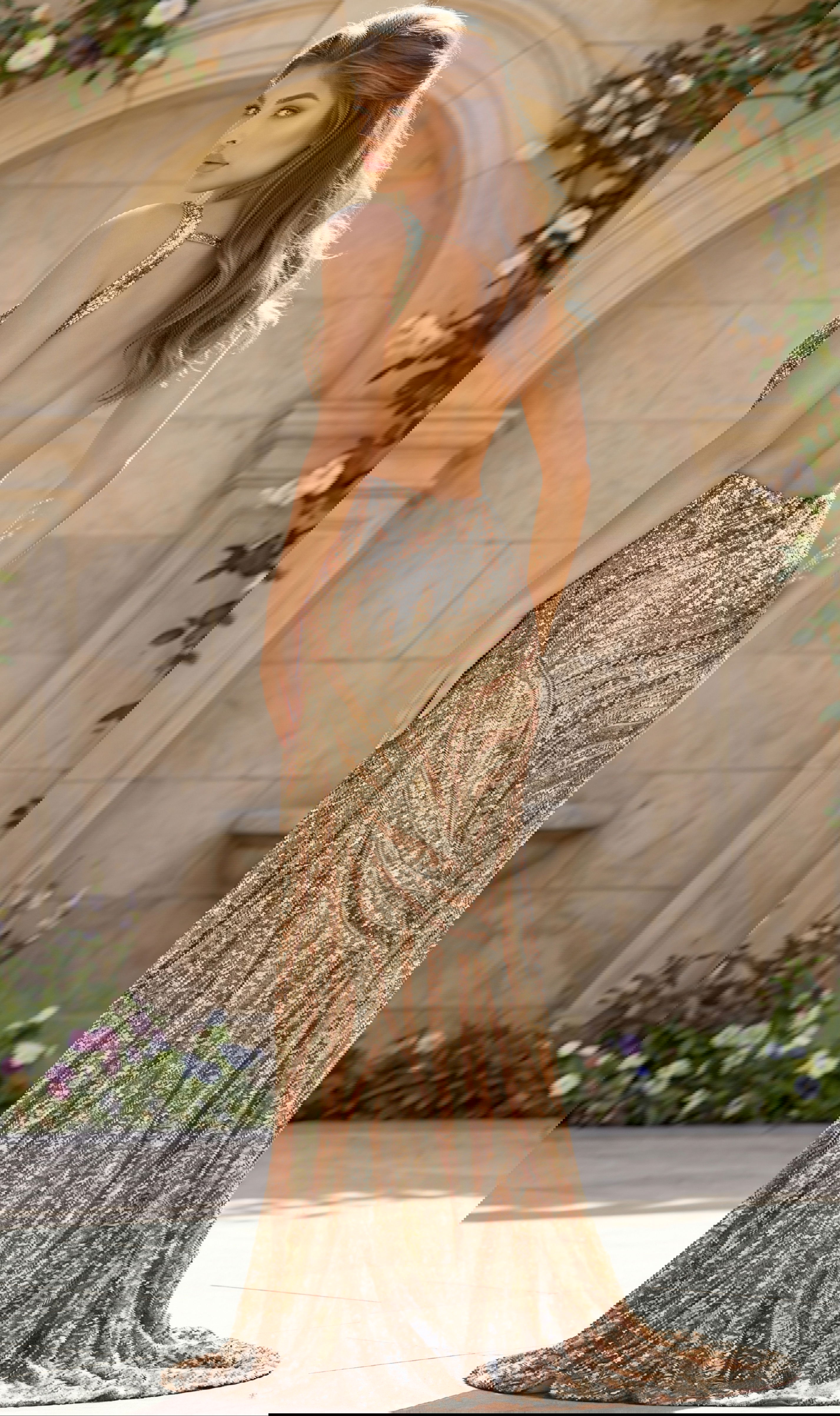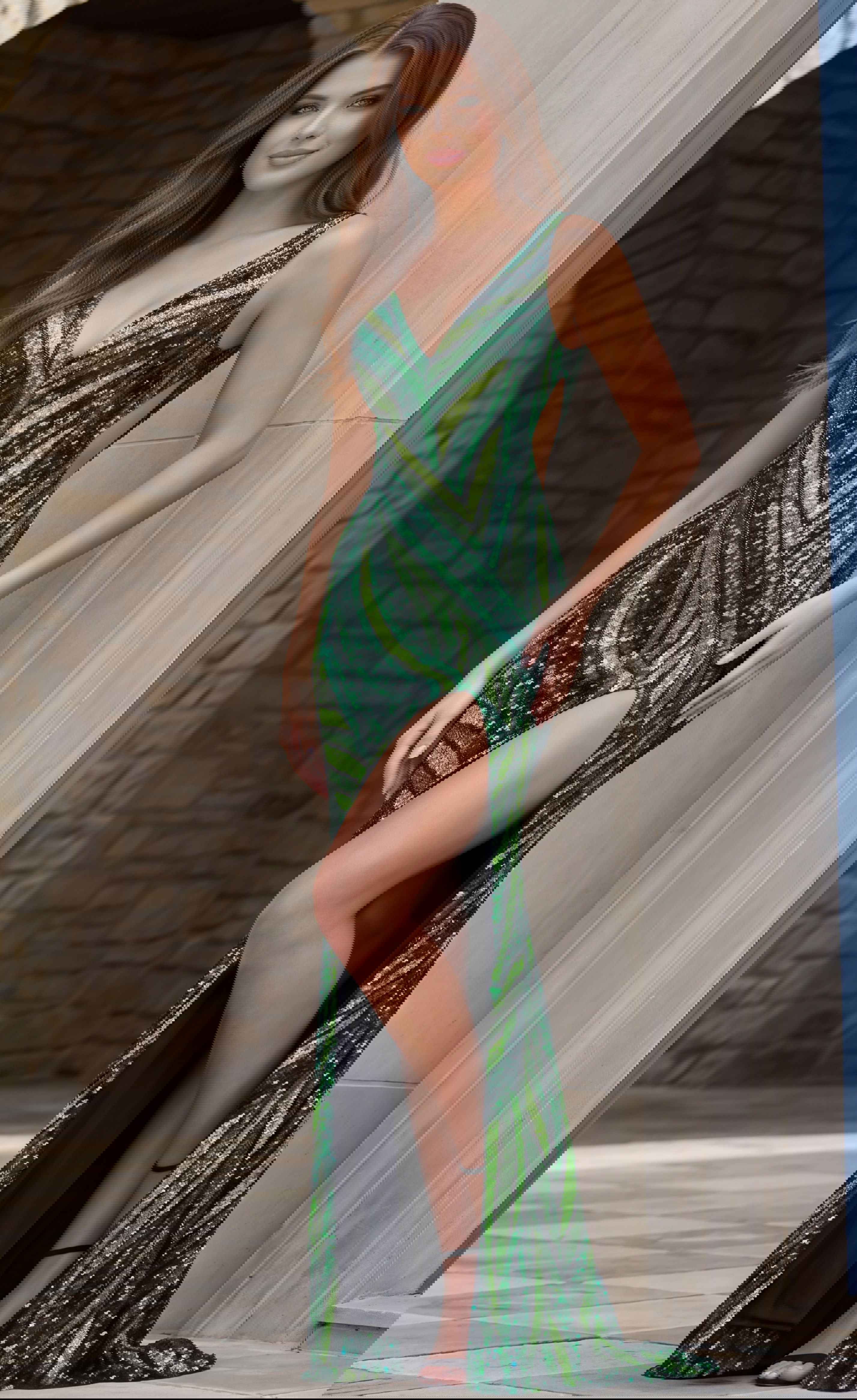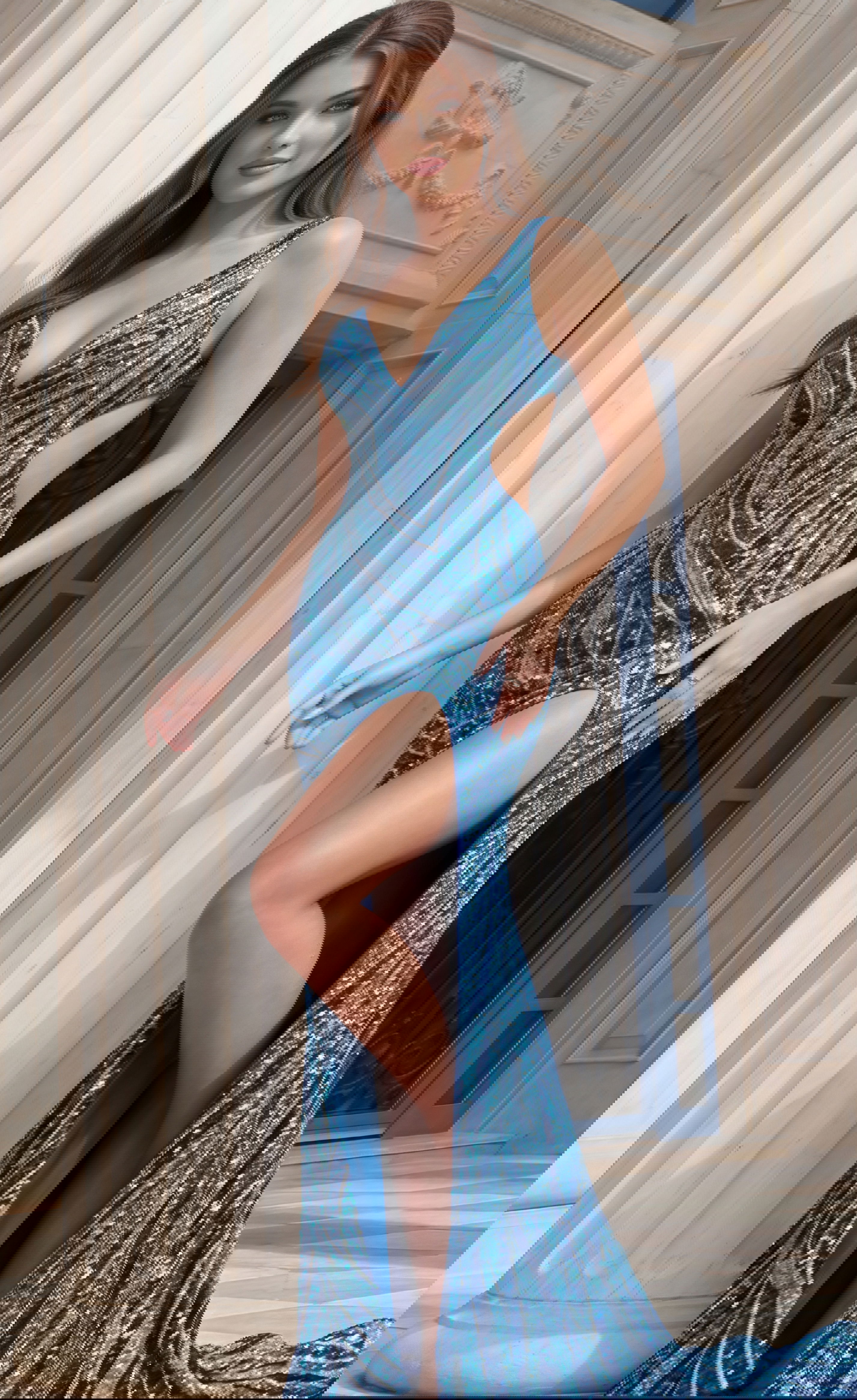 Sequin Plunge Neck High Slit Fitted Gown 47793