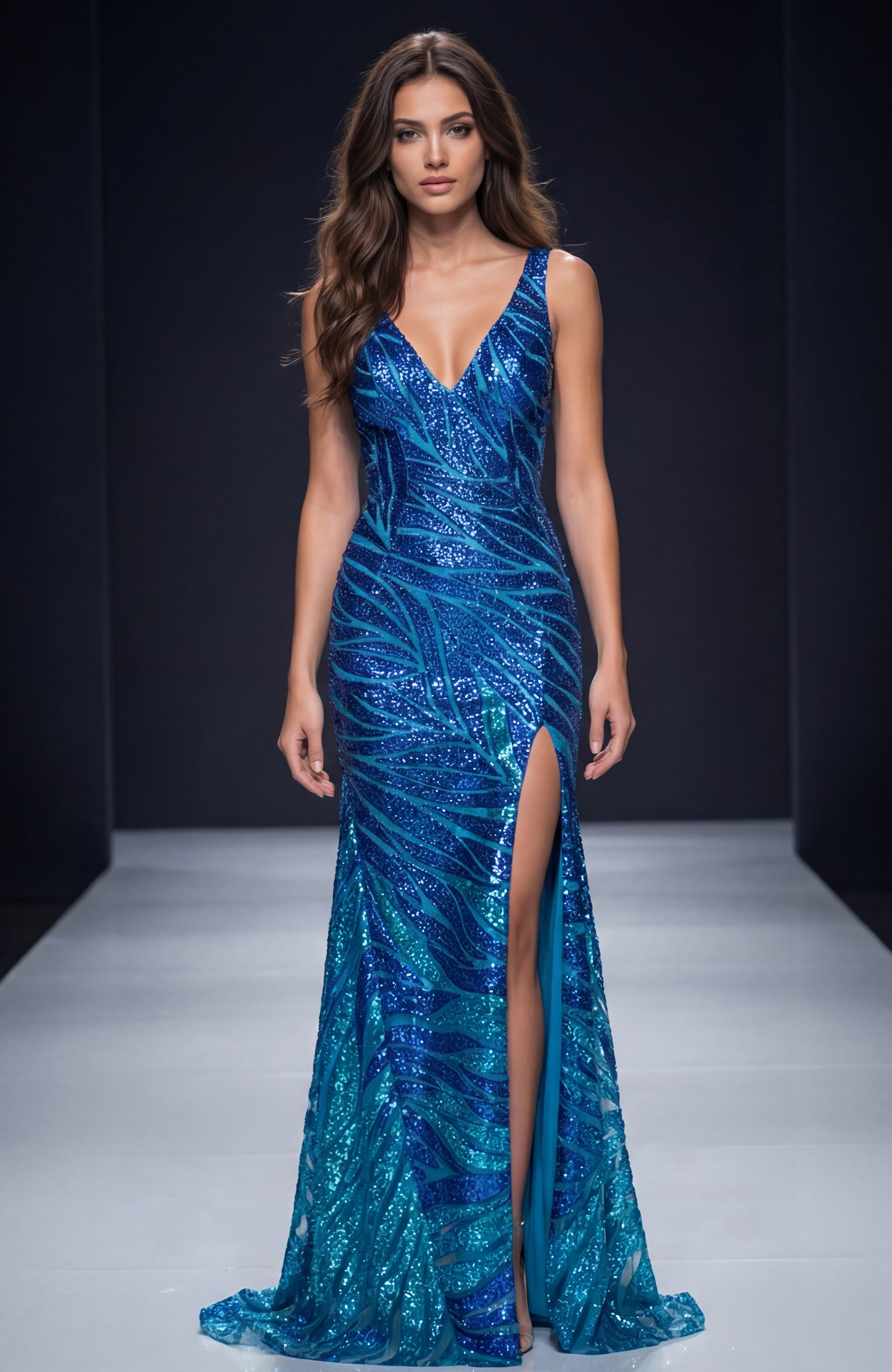 Sequin V-Neck Prom Dress with High Slit 47682