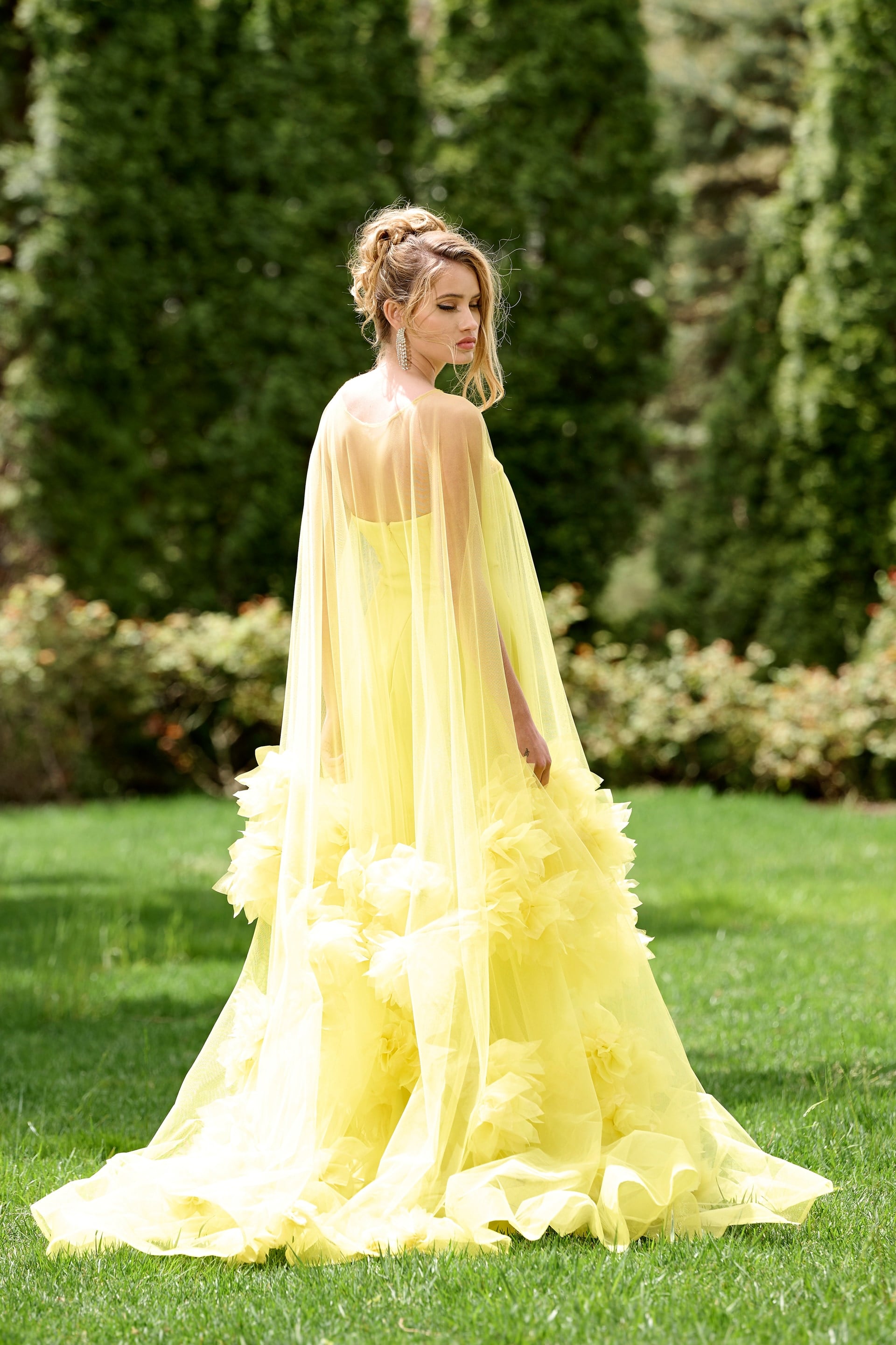 Open Back with Sheer Tulle Cape