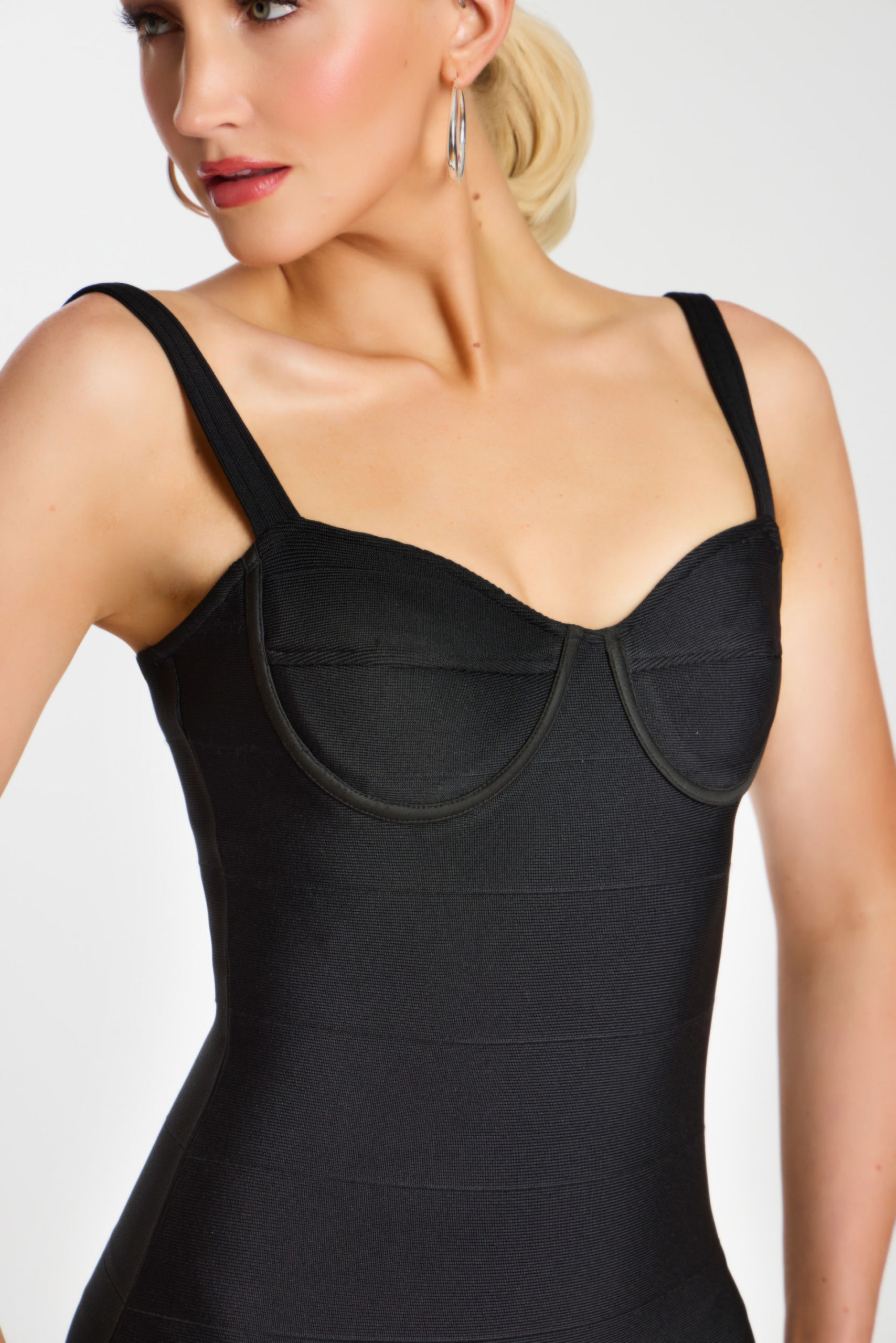 Sleek Black Midi Dress With Rhinestone Detail 46641