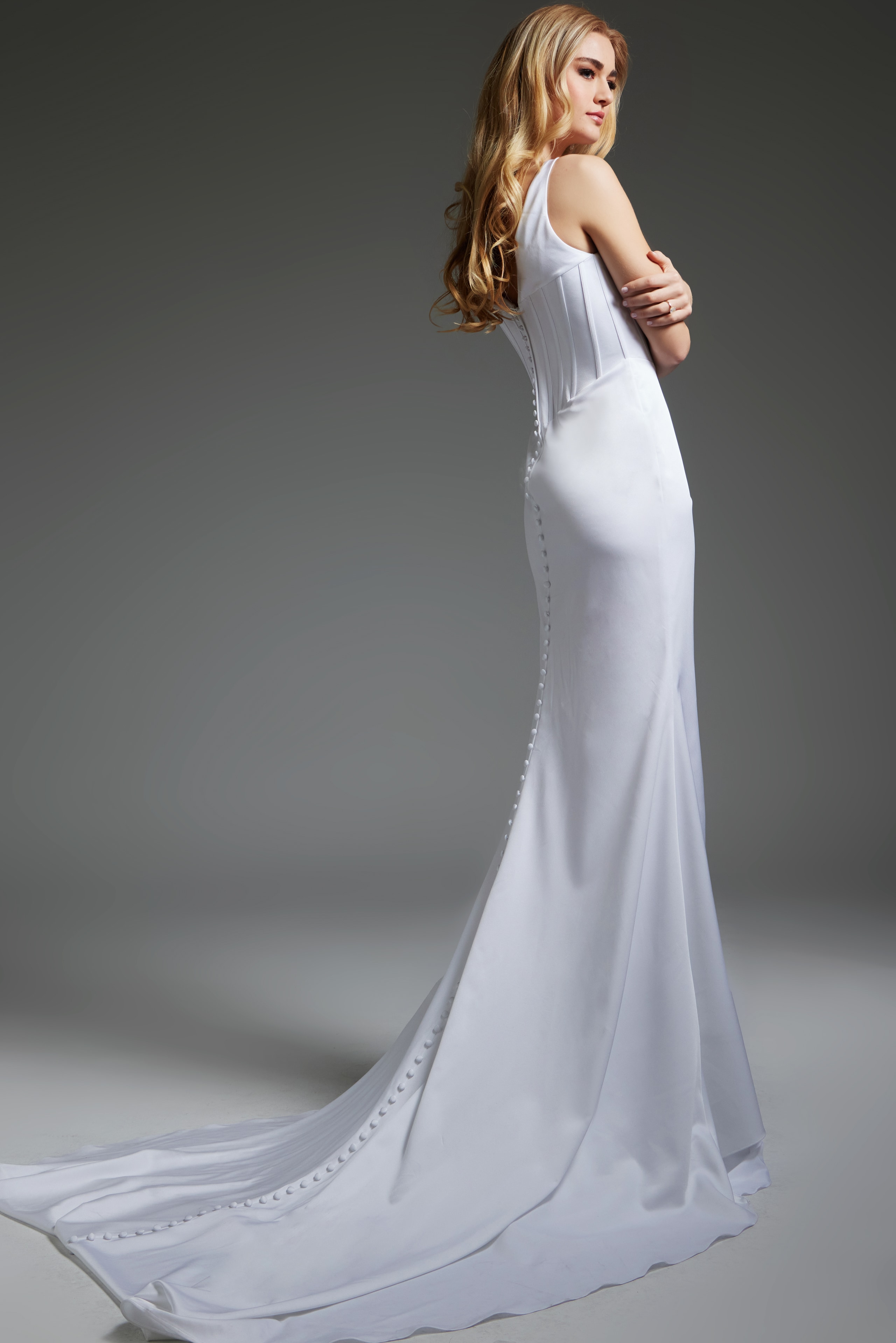 This stunning Satin Mermaid Gown features a floor-length design with a fitted bodice and hips that elegantly flares out at the knee. The gown is crafted in luxurious satin fabric, offering a smooth, glossy finish that captures the light beautifully. The deep V-neckline and sleeveless design add a touch of allure, while the high slit guarantees a dramatic entrance. Perfect for formal events, this gown combines classic elegance with a modern twist.