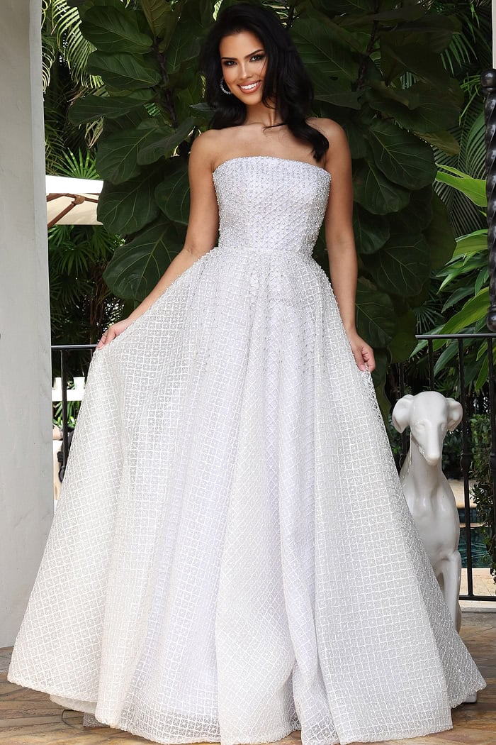 Strapless Textured A-Line Gown With Flowing Skirt 45788