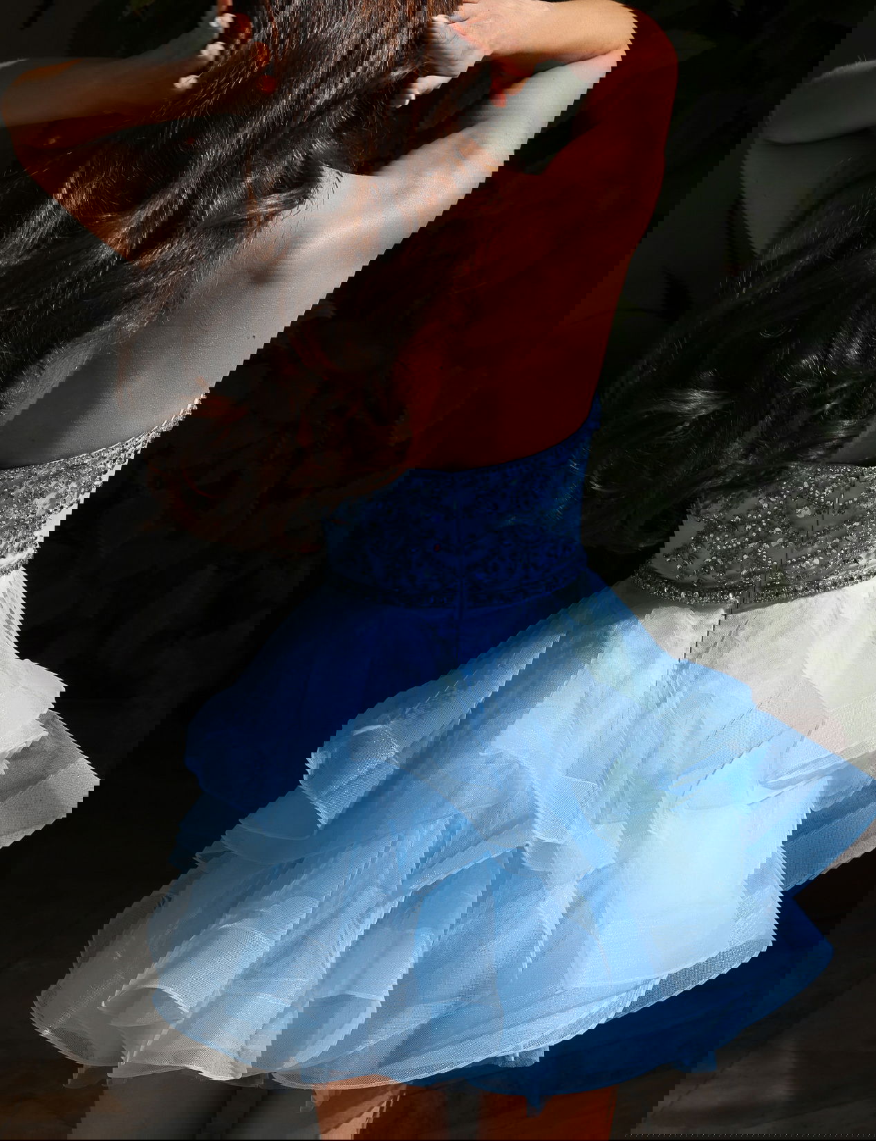 Strapless Beaded Bodice Ruffle Mini Dress K52181