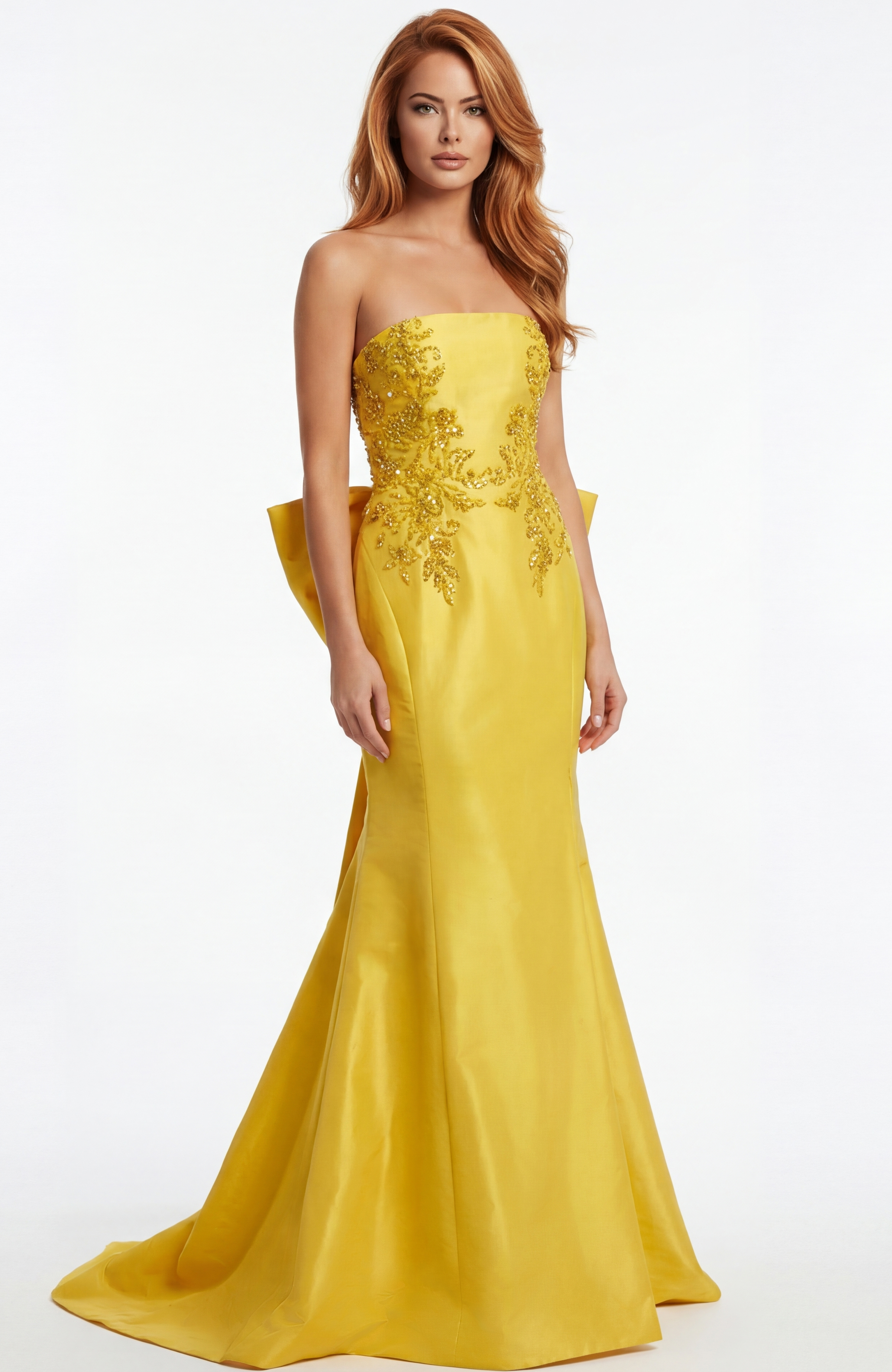 Strapless Beaded Column Gown With Illusion Details 47362