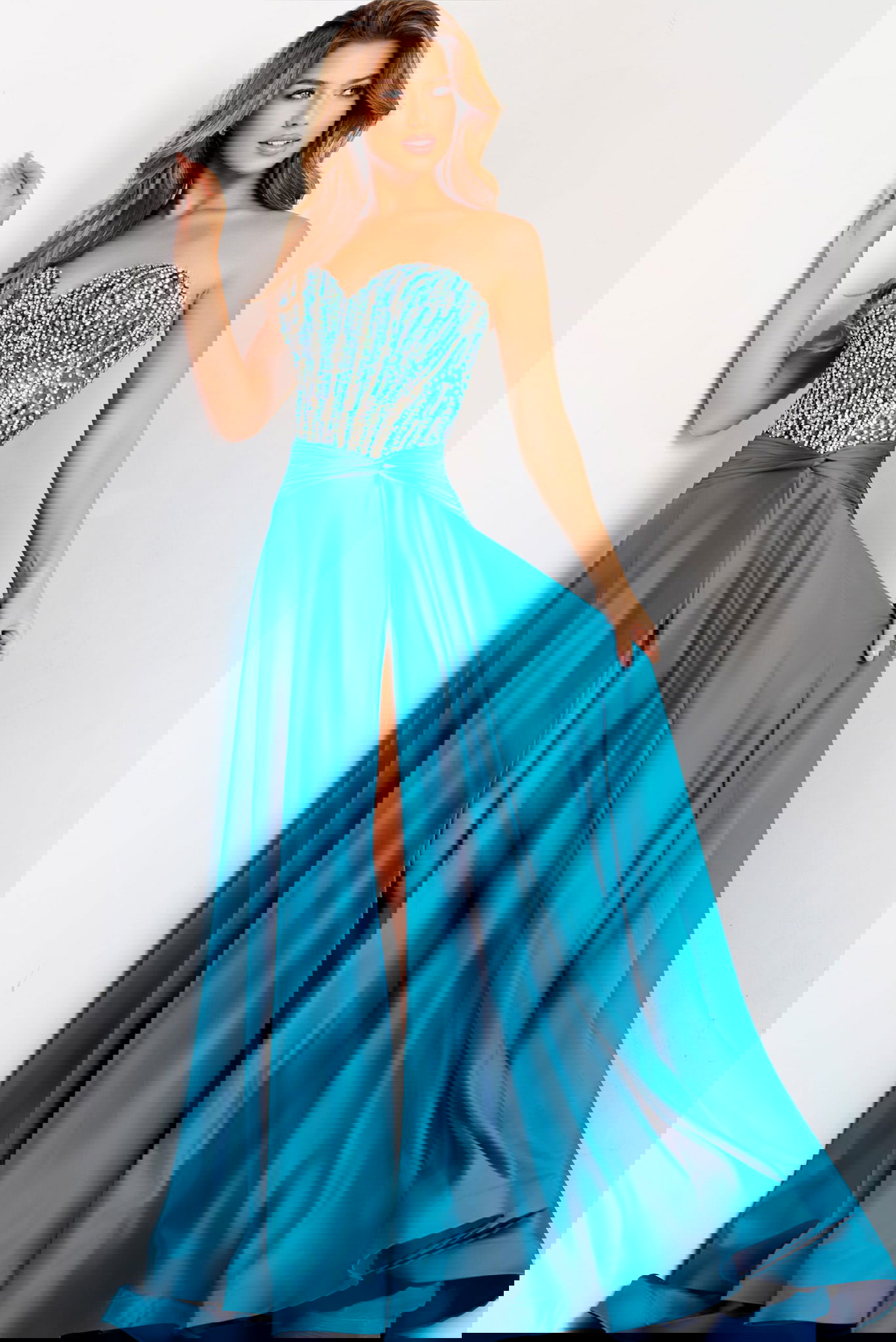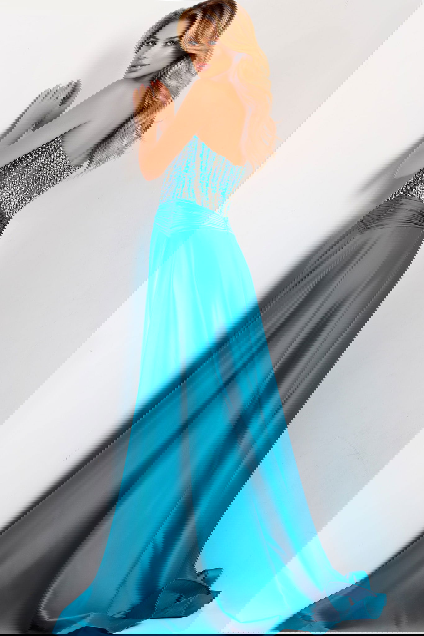 Beaded Bodice, High Slit, Fitted Waistband, Flowing Skirt with Train
