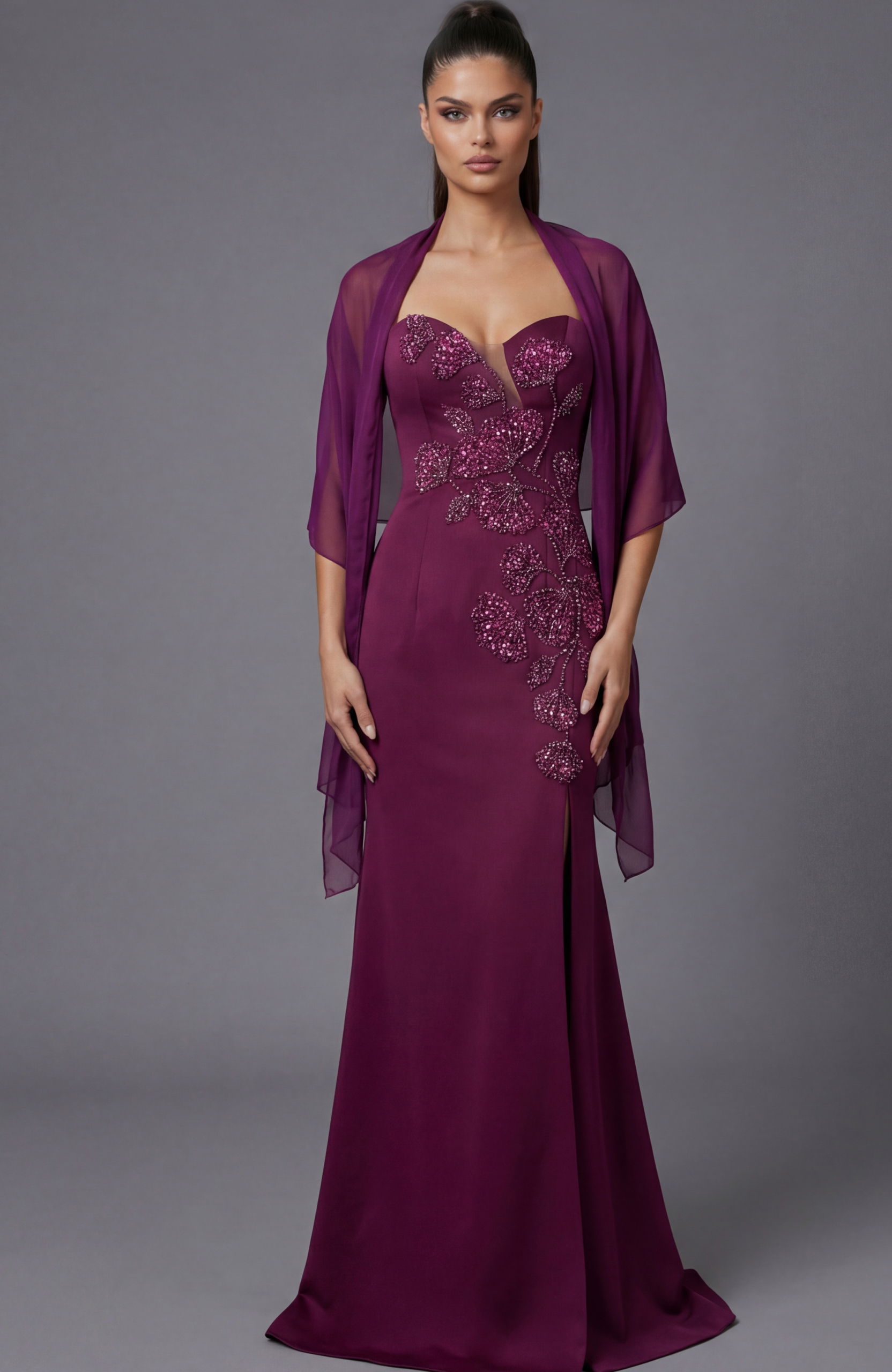 Strapless Beaded Evening Gown With Sheer Shawl 47155