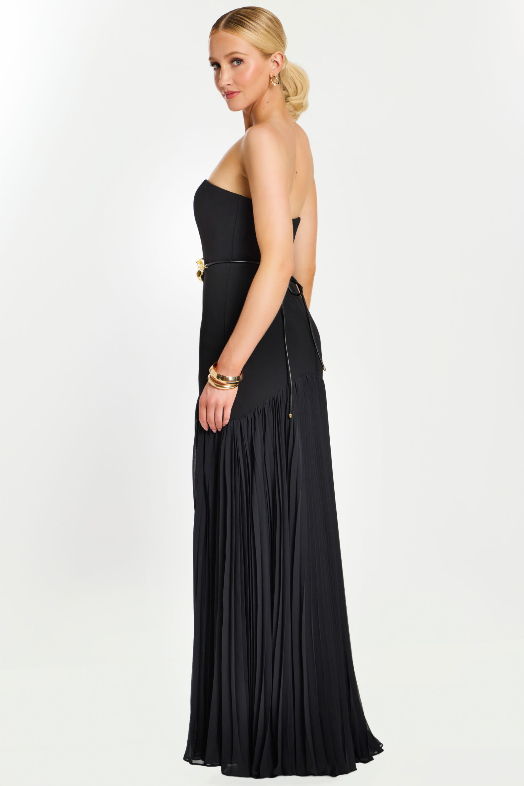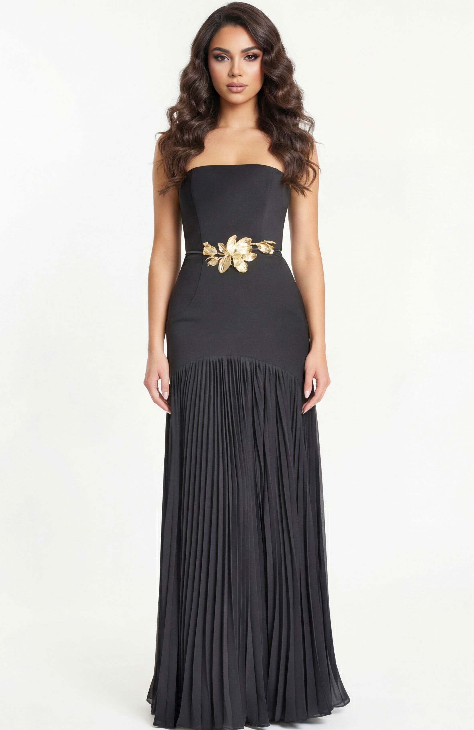 Strapless Black Gown With Gold Floral Waist Detail 47000