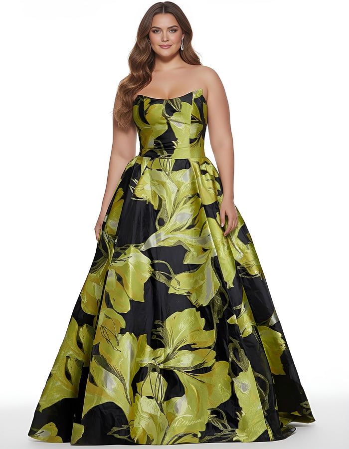 Large Leaf Print, Pleated Skirt, Side Pockets, Bow Accent at Waist