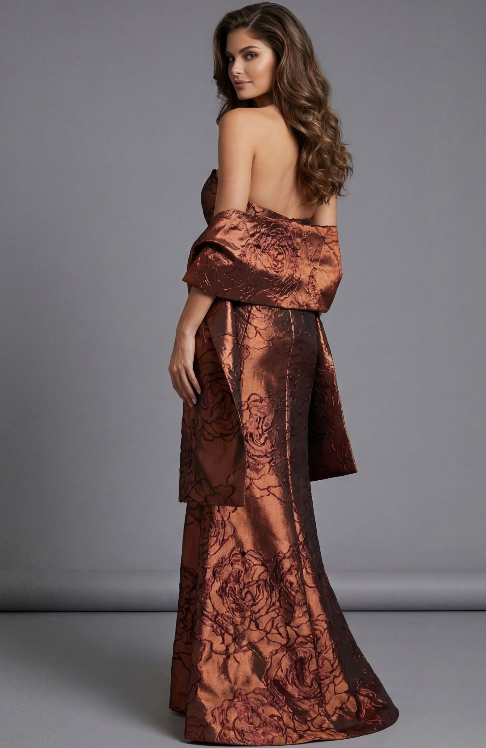 Strapless Brocade Evening Gown With Peplum Waist 49073