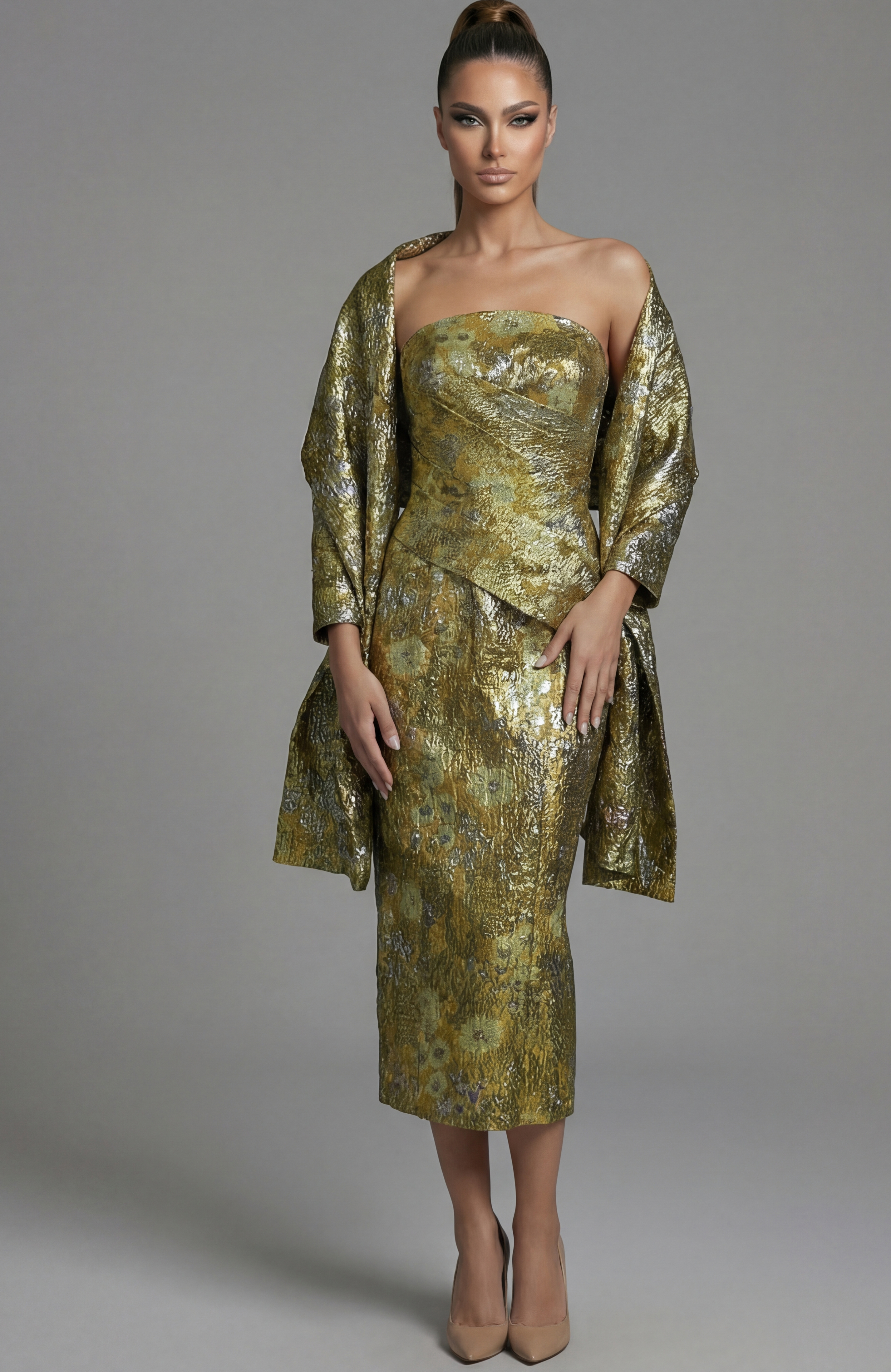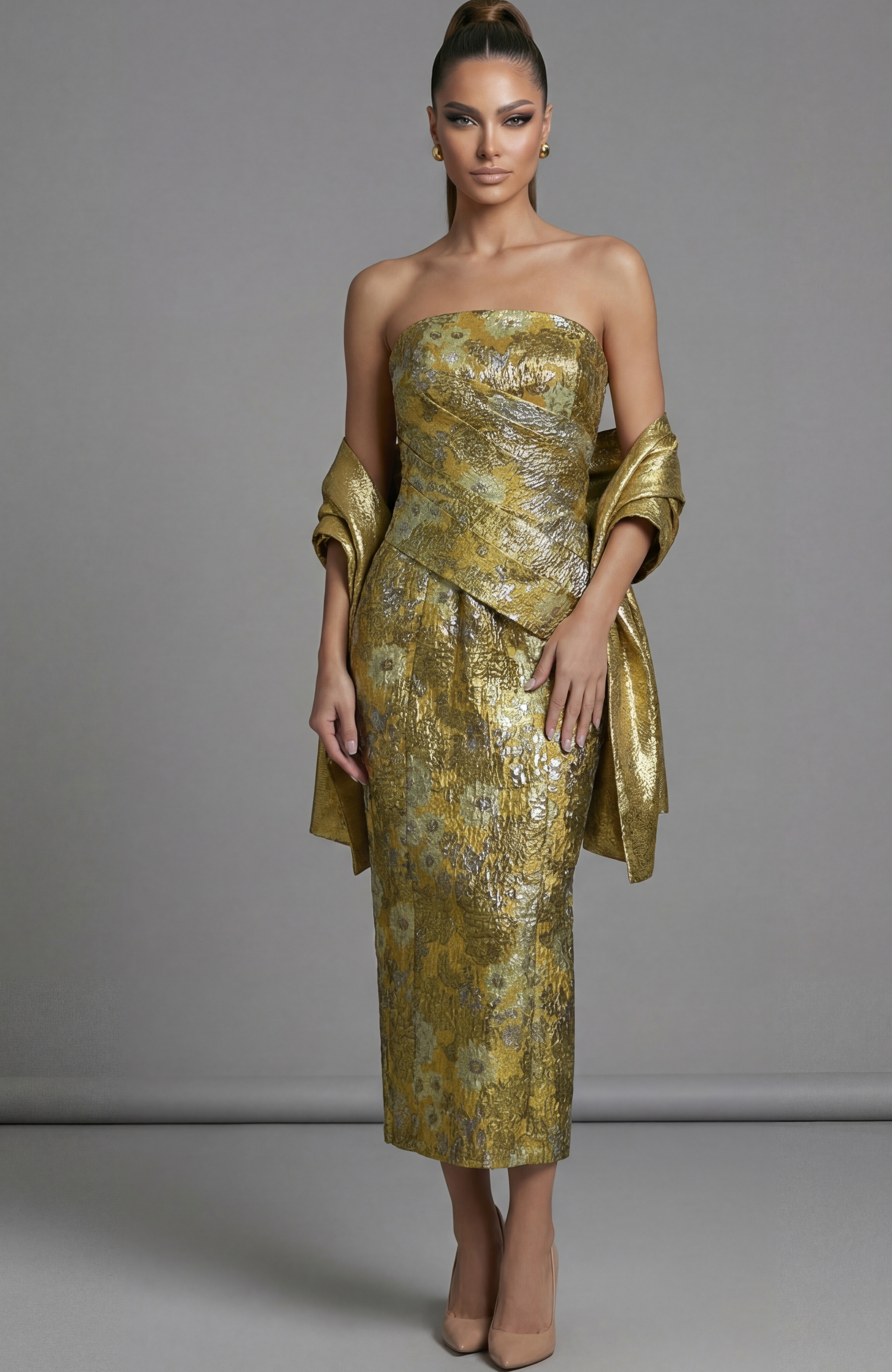 One Shoulder Draped Gown With Open Back 47150