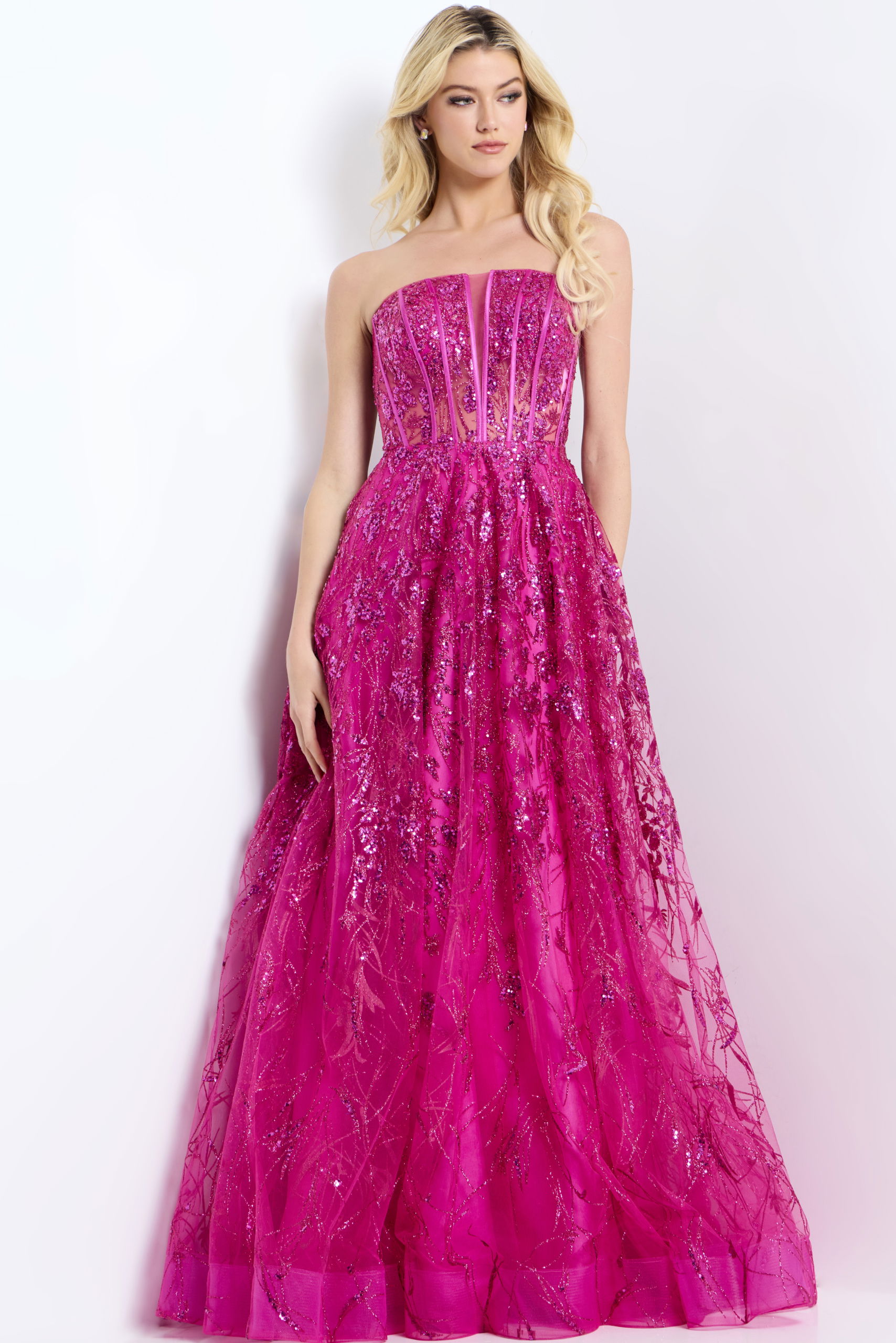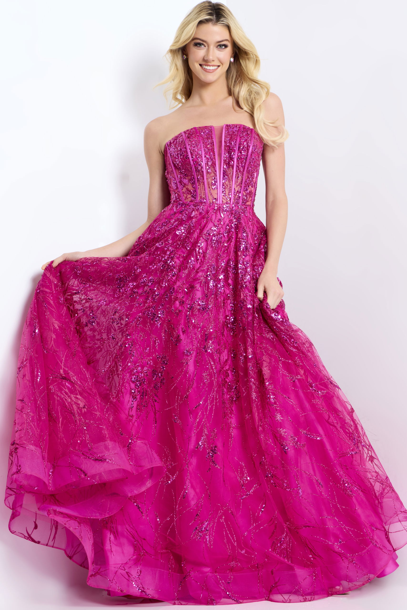 Strapless Corset Ball Gown With Bow Back 45913