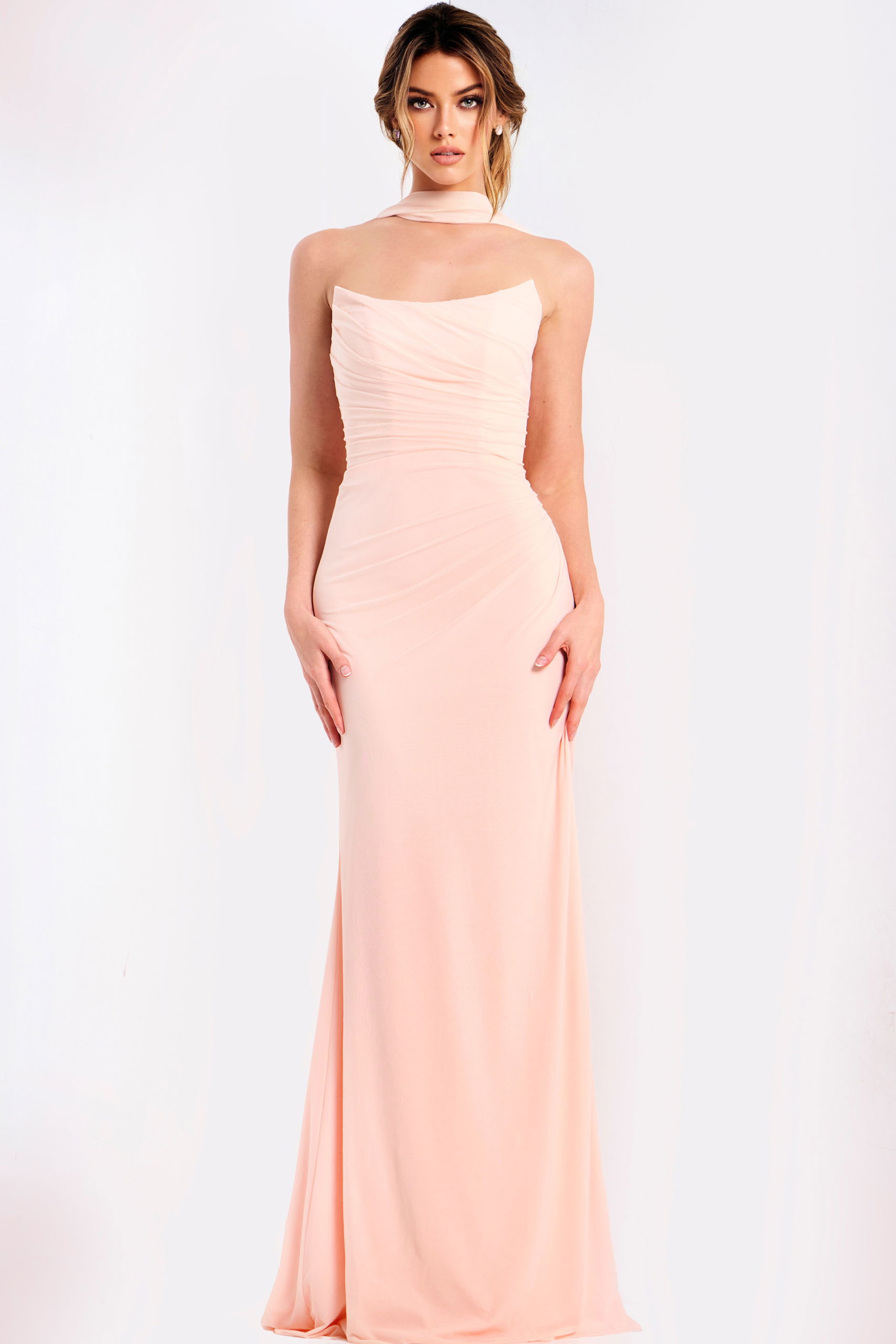 Strapless Dress with Ruched Bodice and Scarf 47874
